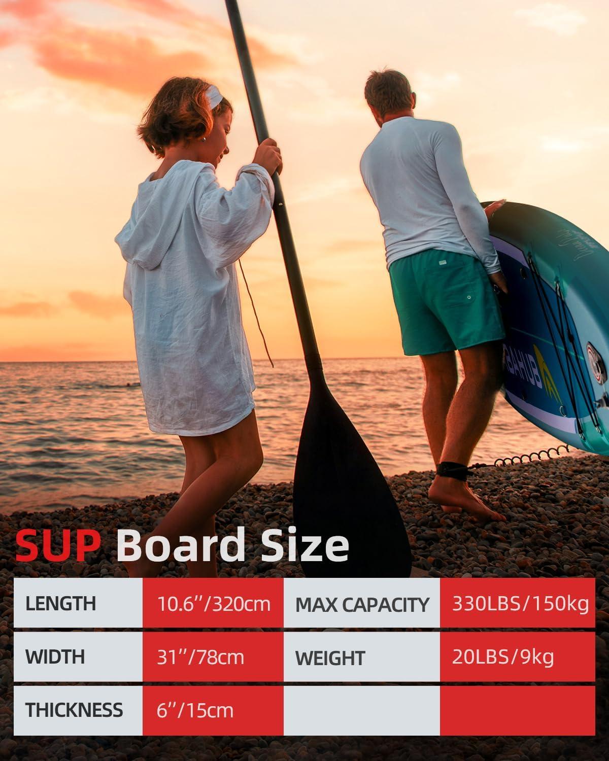 Abahub Inflatable SUP, Wide 10’6″ x 31″/34″ x 10’6″ iSUP, Blue Standup Paddleboard with Adjustable SUP Kayak Paddle, for Yoga, Paddle Board, Kayaking, Surf, Canoe, Fishing(31″ Blue lite)