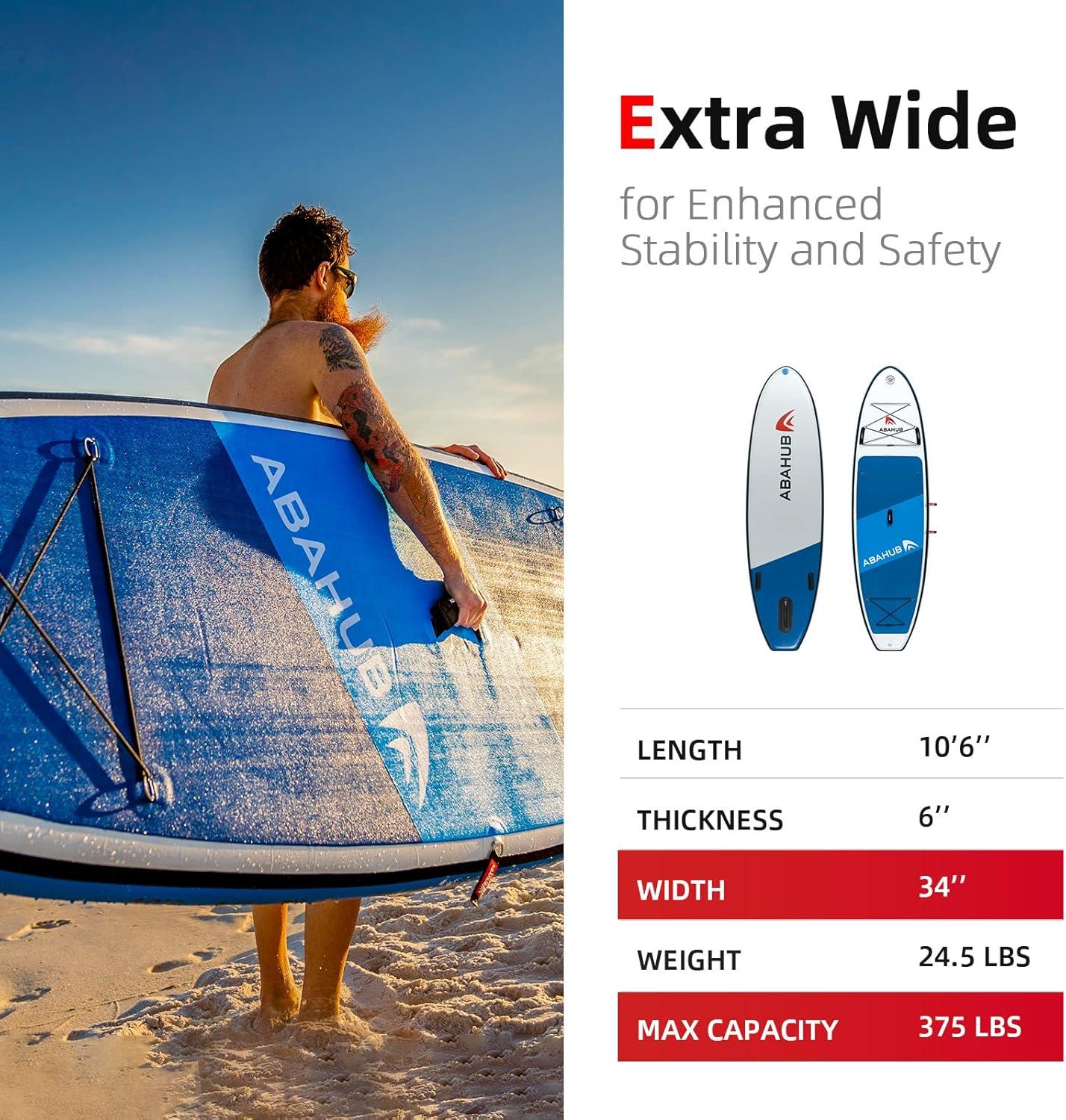 Abahub Inflatable SUP, Wide 10’6″ x 31″/34″ x 10’6″ iSUP, Blue Standup Paddleboard with Adjustable SUP Kayak Paddle, for Yoga, Paddle Board, Kayaking, Surf, Canoe, Fishing(34″ Blue)