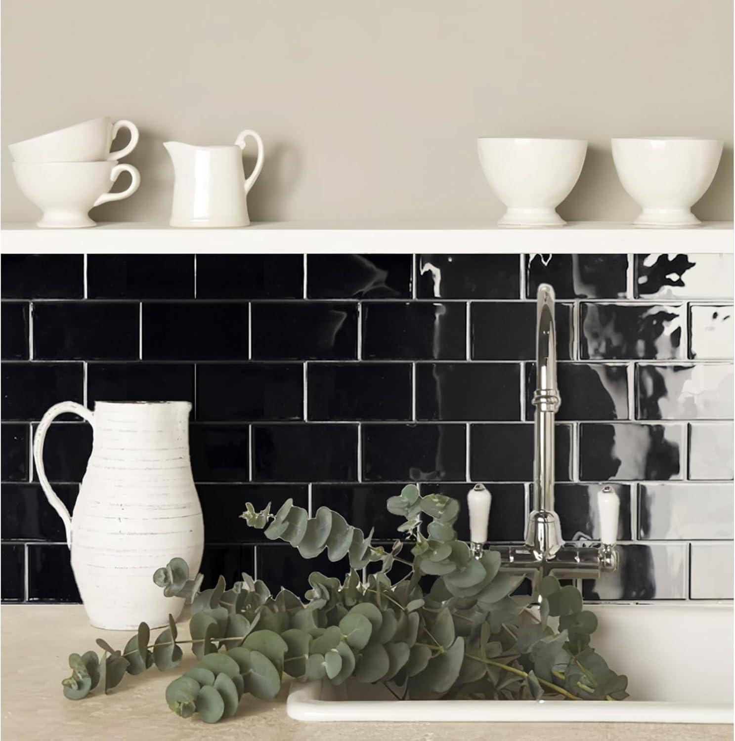 imageArt3d 10Pack HeavyDuty Peel and Stick Backsplash 126 x 106 Inch Stick on Wall Tiles for Kitchen Bathroom Countertop Decor Warm White with Gray GroutGlossy Black
