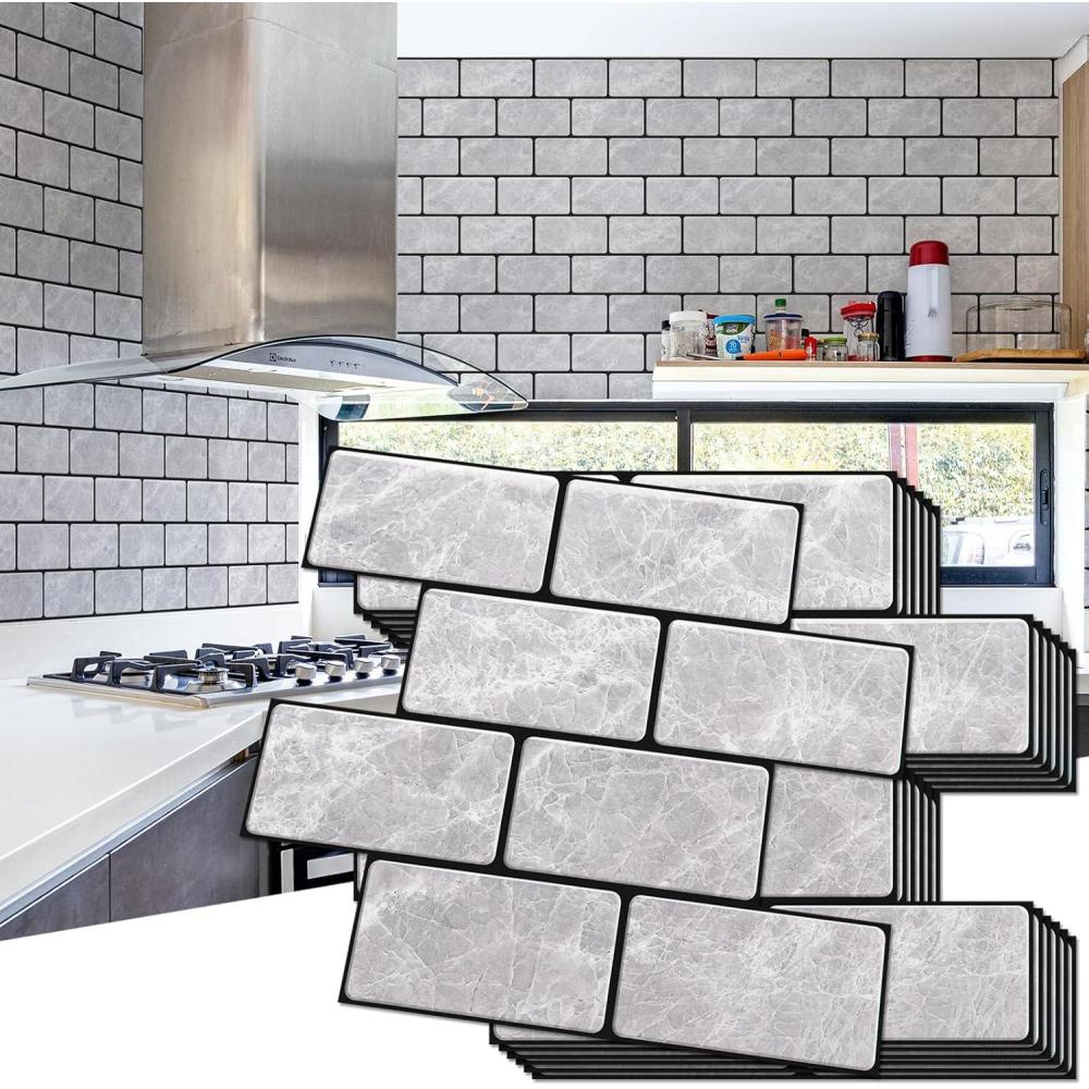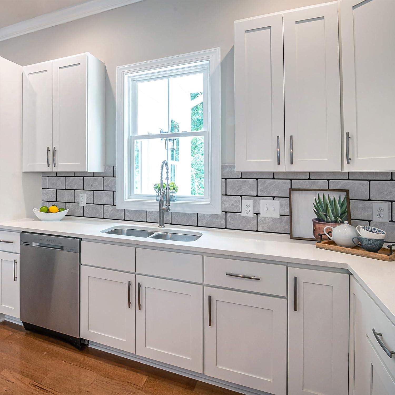 imageArt3d 10Pack HeavyDuty Peel and Stick Backsplash 126 x 106 Inch Stick on Wall Tiles for Kitchen Bathroom Countertop Decor Warm White with Gray GroutJade Marble