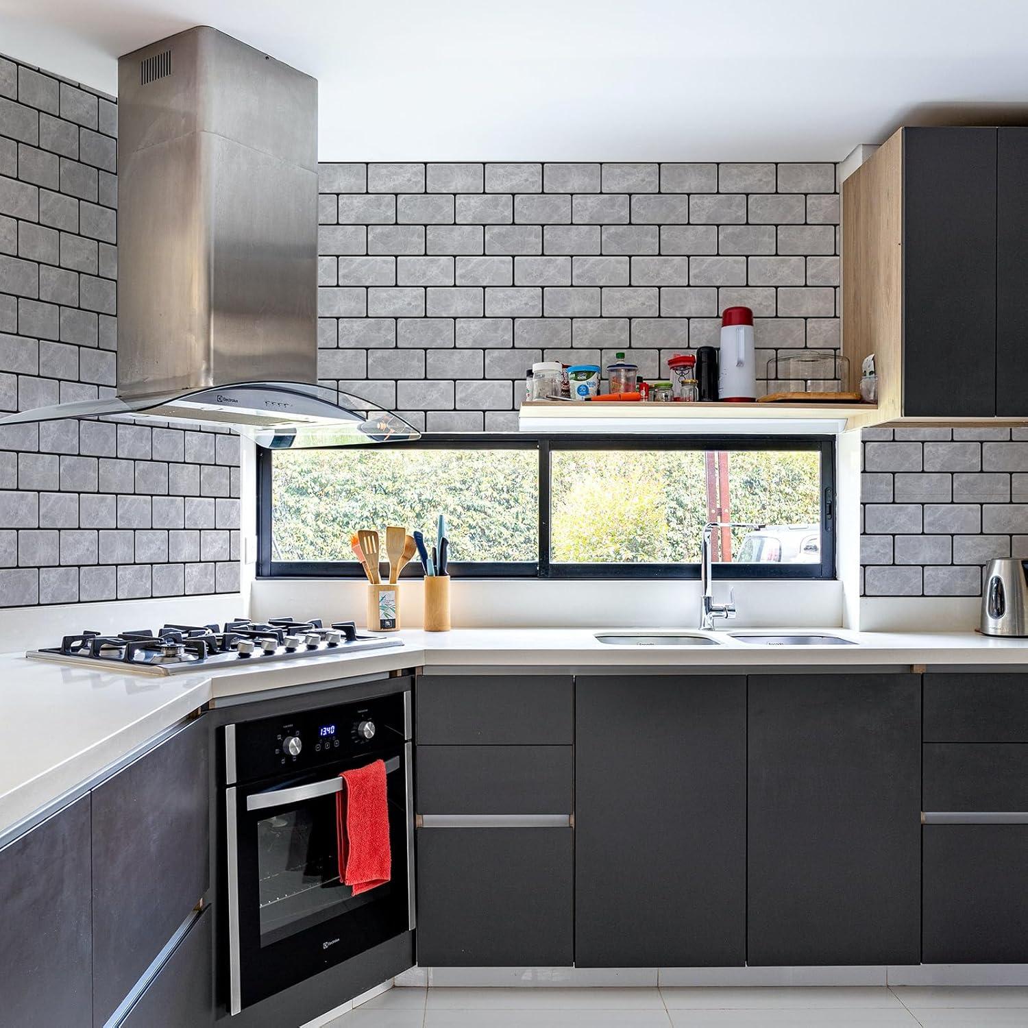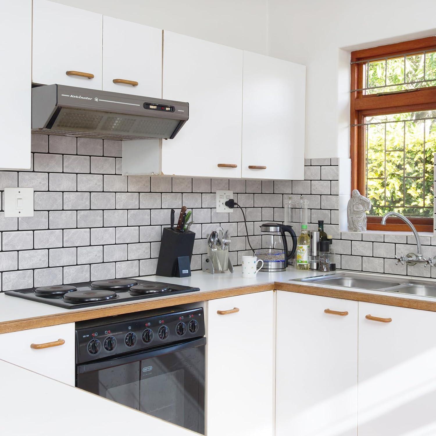 imageArt3d 10Pack HeavyDuty Peel and Stick Backsplash 126 x 106 Inch Stick on Wall Tiles for Kitchen Bathroom Countertop Decor Warm White with Gray GroutGlossy Black