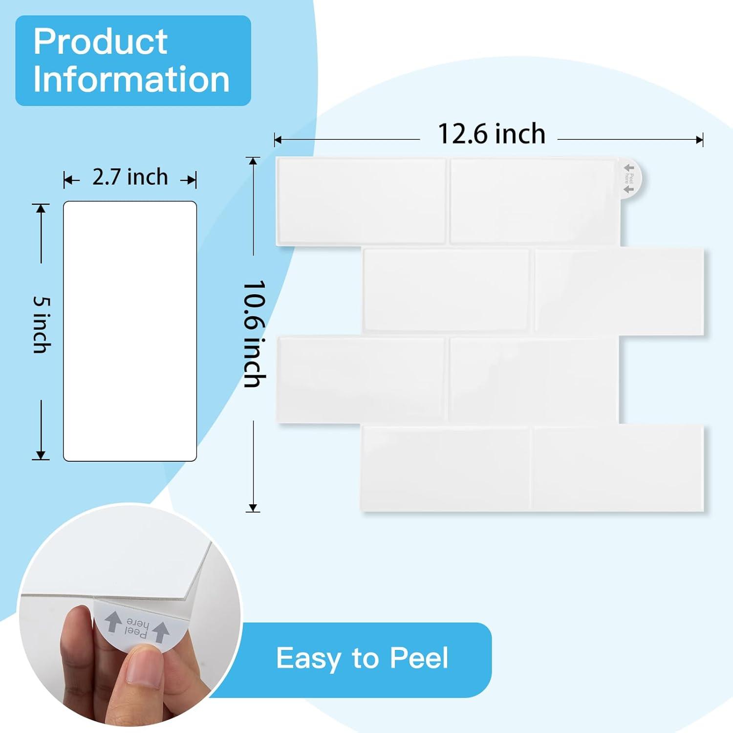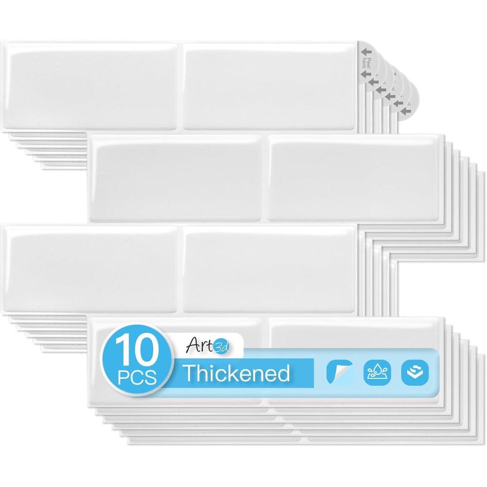Art3d 10-Pack Heavy-Duty Peel and Stick Backsplash, 12.6 x 10.6 Inch Stick on Wall Tiles for Kitchen Bathroom Countertop Decor, Warm White with Gray Grout(White)
