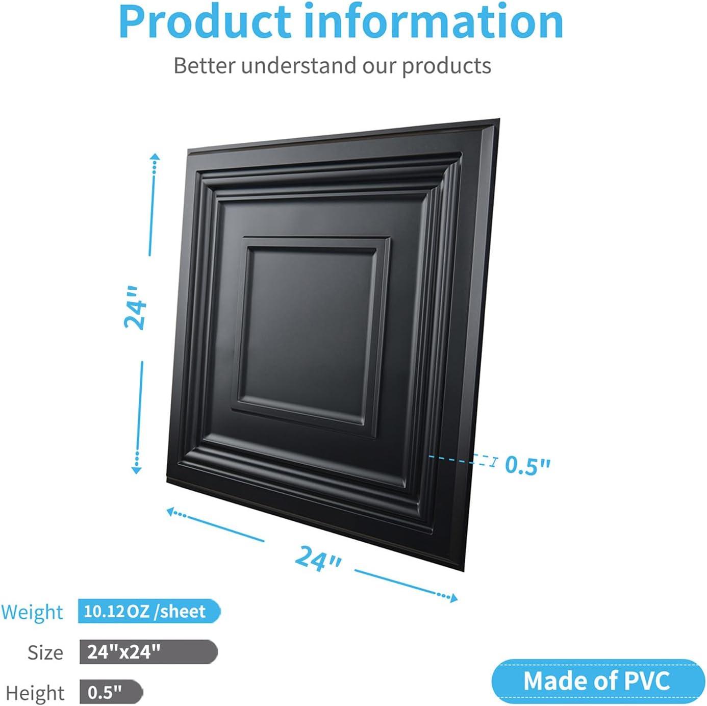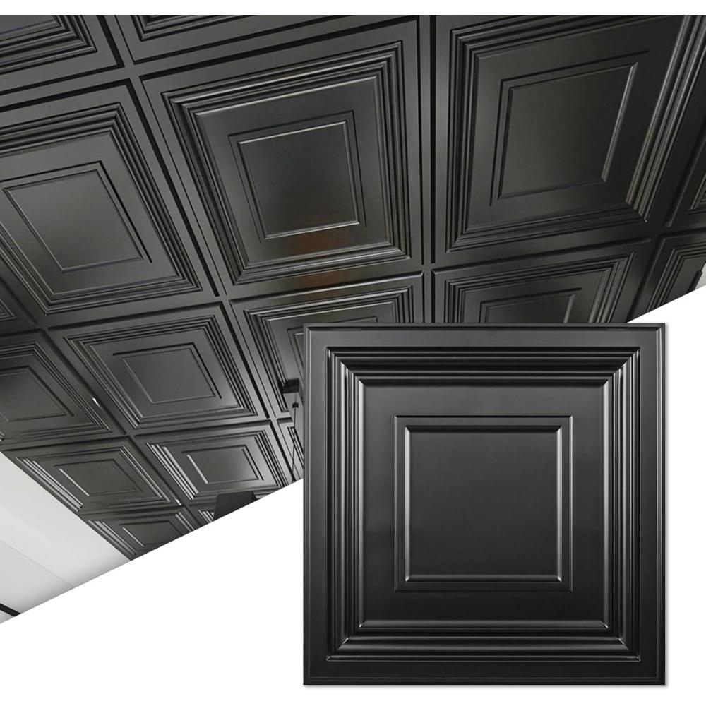imageArt3d 12Pack PVC Drop Ceiling Tiles 48 SqFt 24quotx24quot Decorative Panels for Home and Office 2ft x 2ft GoldSquare Black