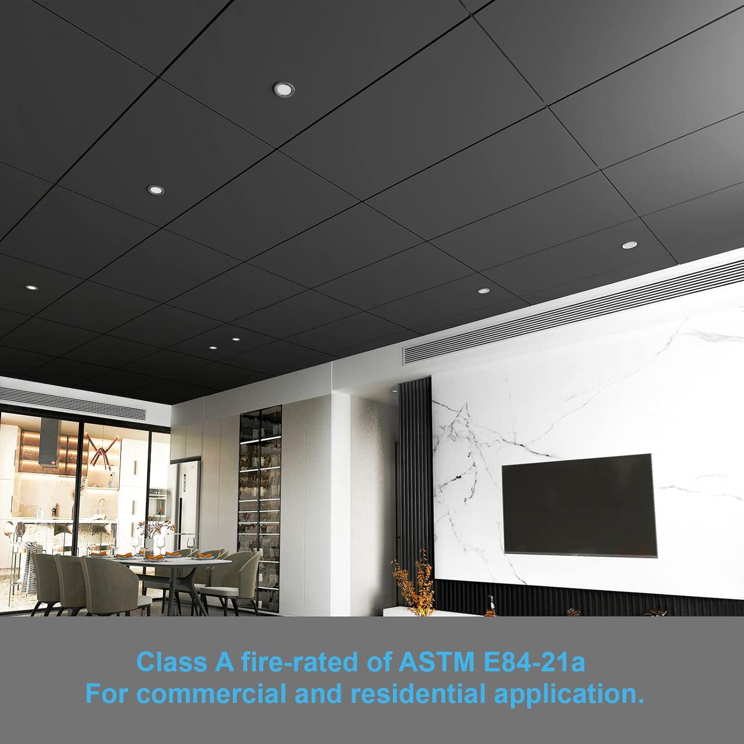 Art3d 12-Pack Smooth Drop Ceiling Tile 2ft x 2ft – Fire-Rated, Waterproof, Reusable – Premium PVC, No Sag and Breakage – Cover 48 Sq. Ft, Black(White – acoustic)