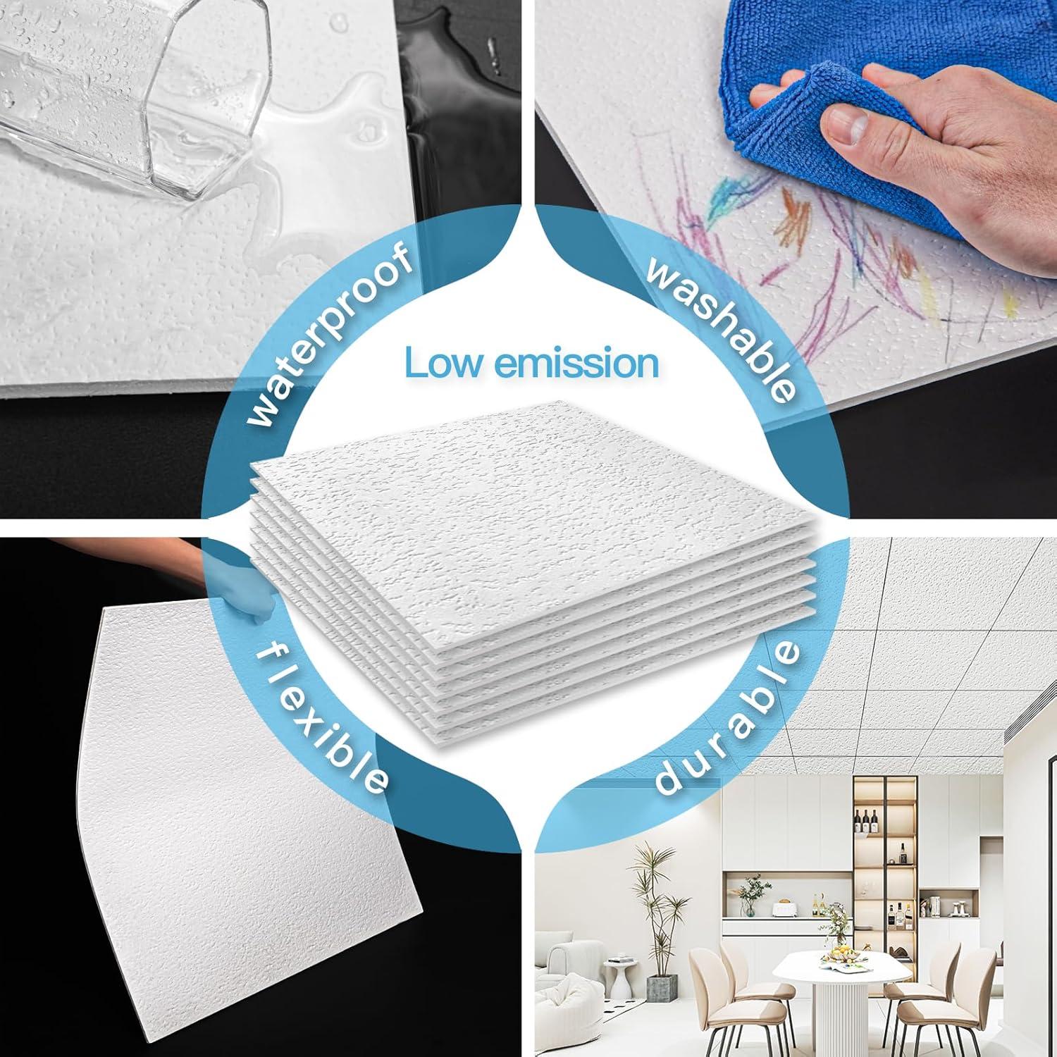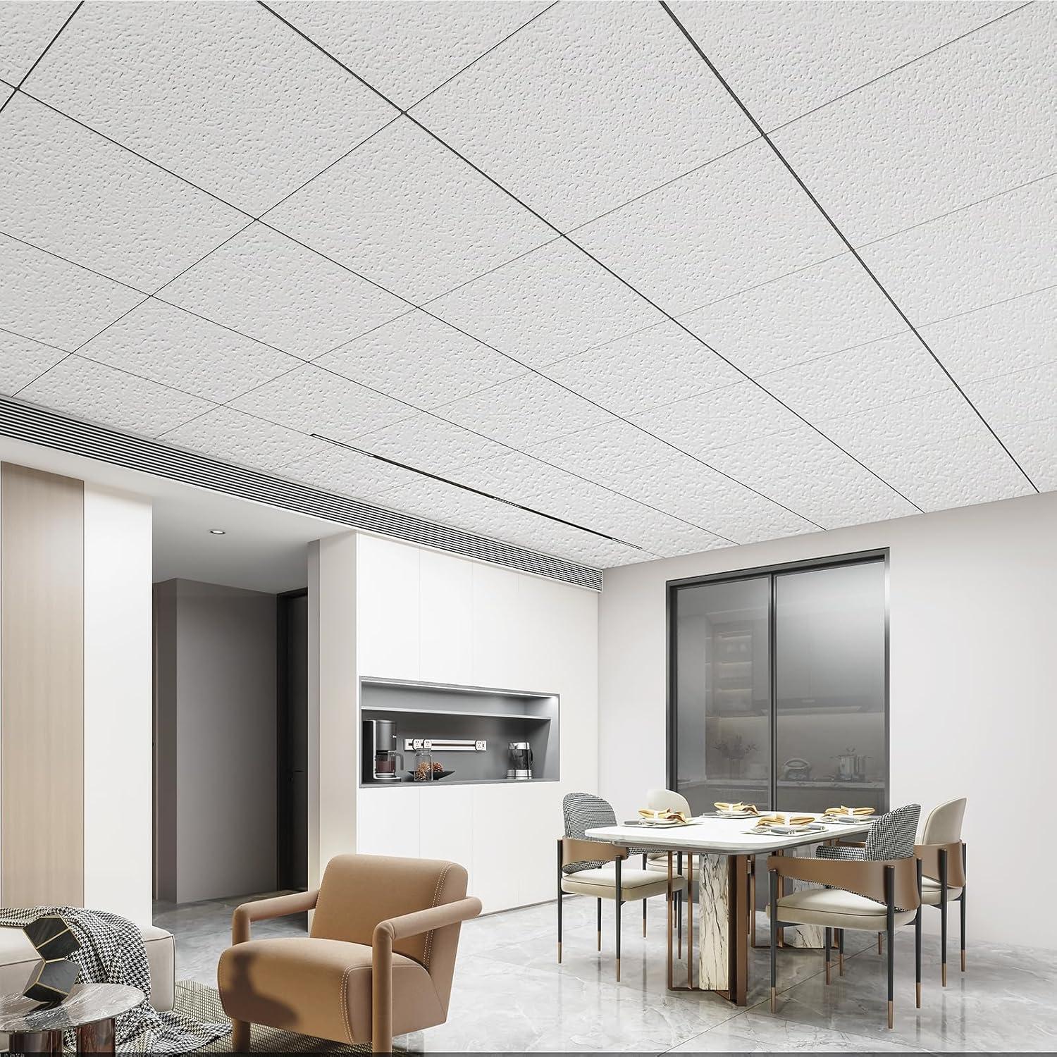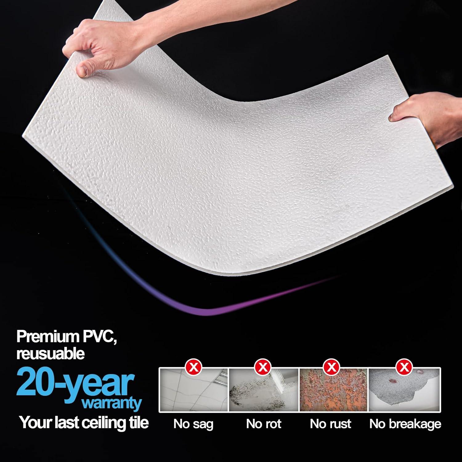 imageArt3d 12Pack Smooth Drop Ceiling Tile 2ft x 2ft  FireRated Waterproof Reusable  Premium PVC No Sag and Breakage  Cover 48 Sq Ft BlackSquare Stucco White