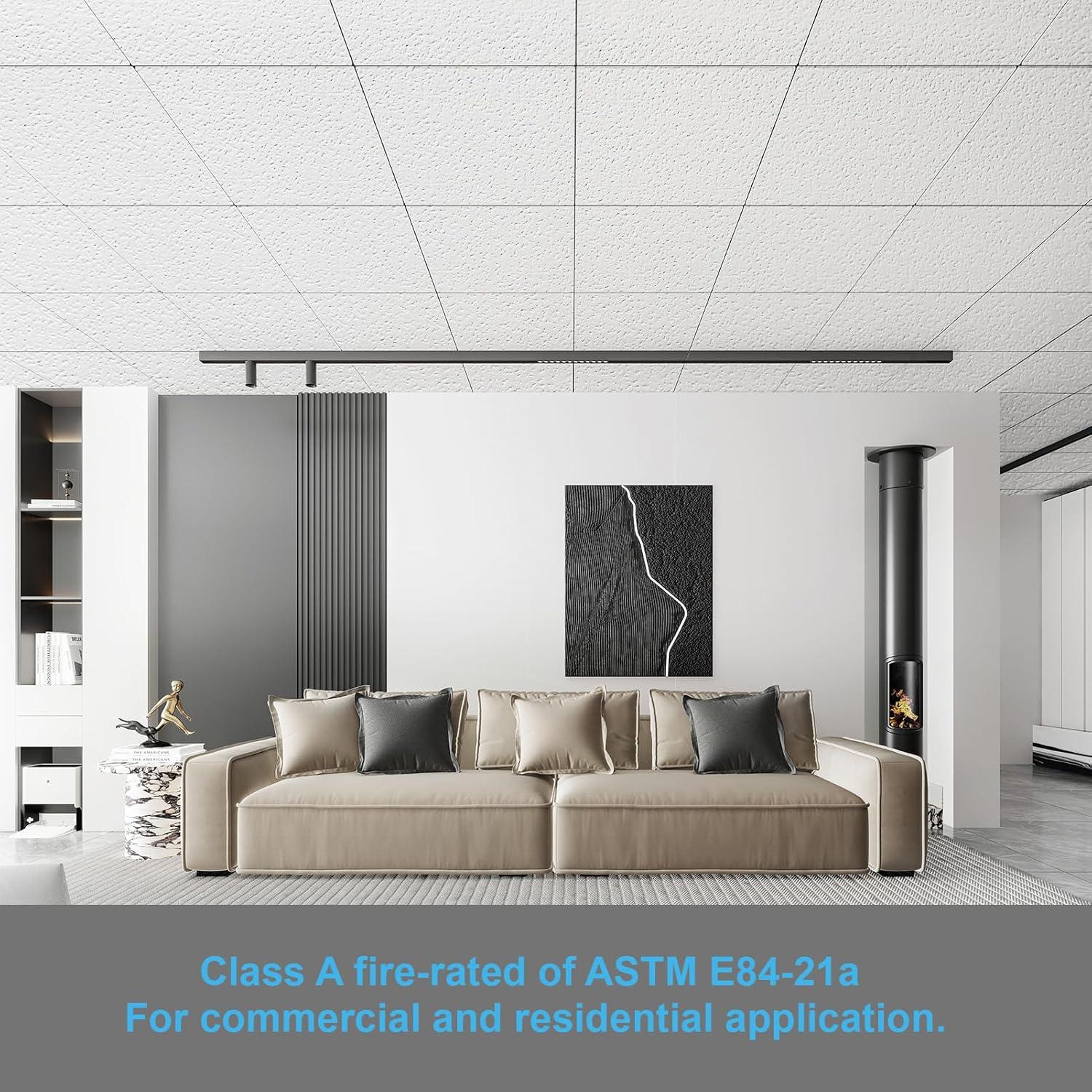 Art3d 12-Pack Smooth Drop Ceiling Tile 2ft x 2ft – Fire-Rated, Waterproof, Reusable – Premium PVC, No Sag and Breakage – Cover 48 Sq. Ft, Black(White – acoustic)