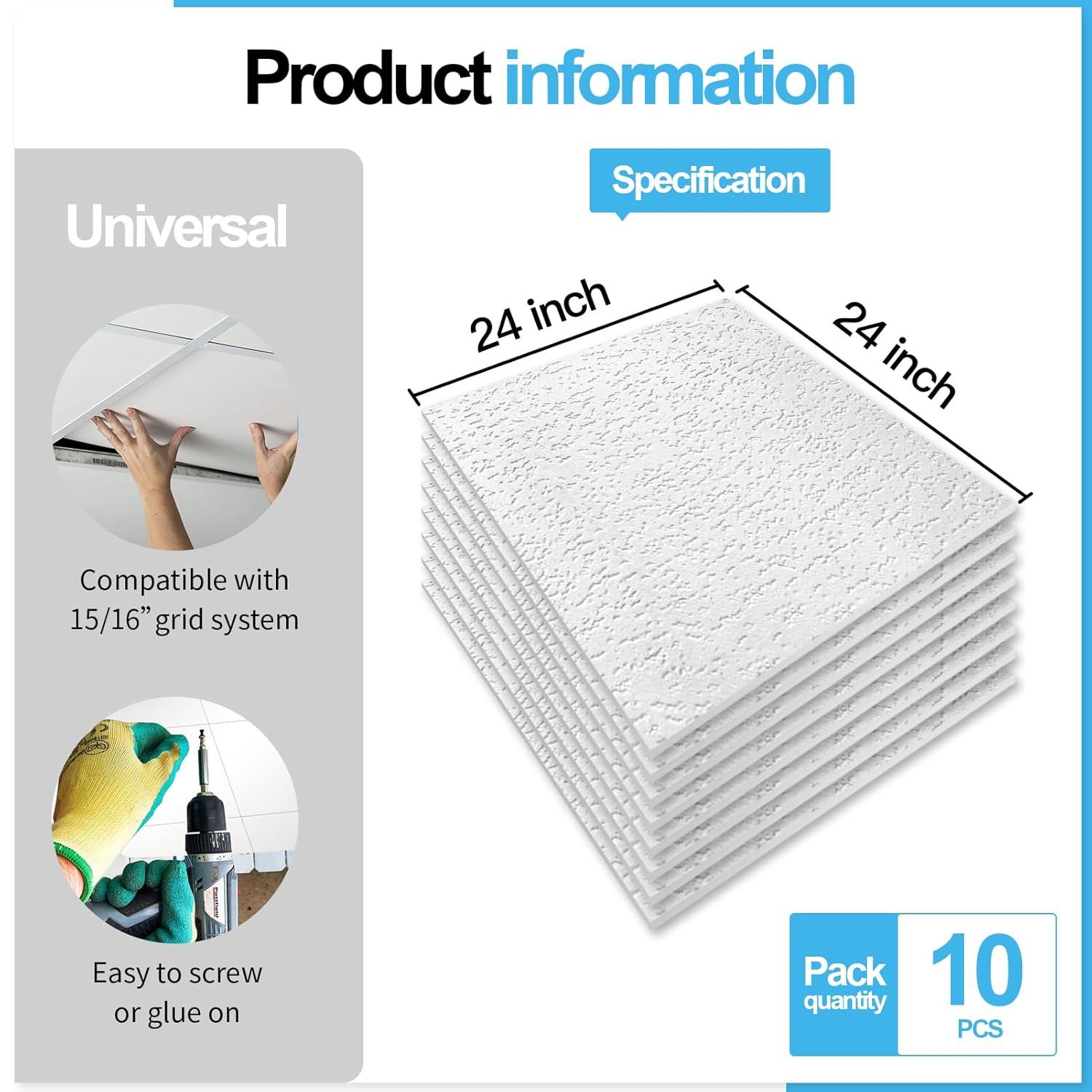 Pack Size: Pack of 12 tiles with size of 2ftx2ft, cover 48 sq.ft. Be aware that white is incompatible with the other Art3d 3D ceiling tiles.