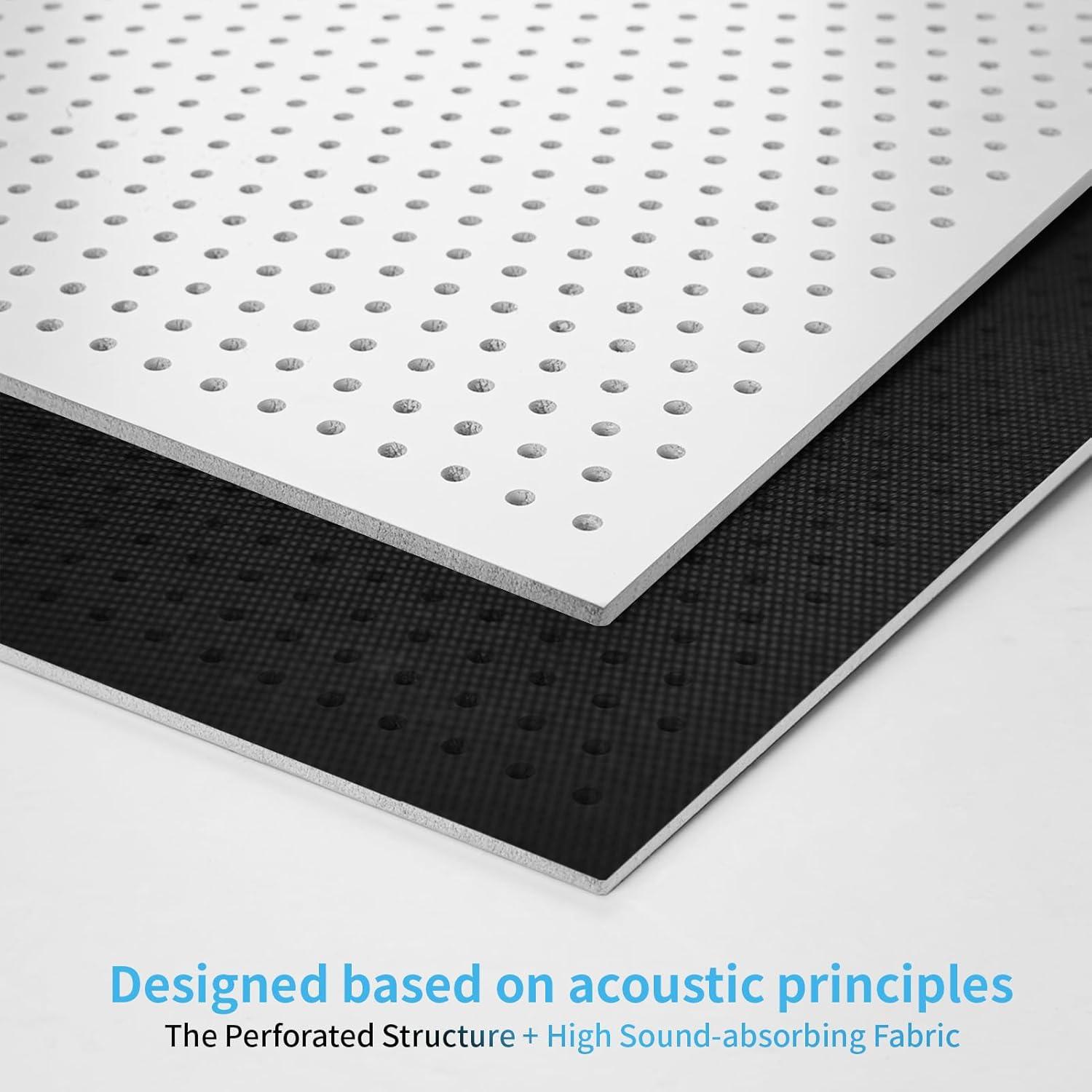 Art3d 12-Pack Smooth Drop Ceiling Tile 2ft x 2ft - Fire-Rated, Waterproof, Reusable - Premium PVC, No Sag and Breakage - Cover 48 Sq. Ft, Black(White - acoustic 2)