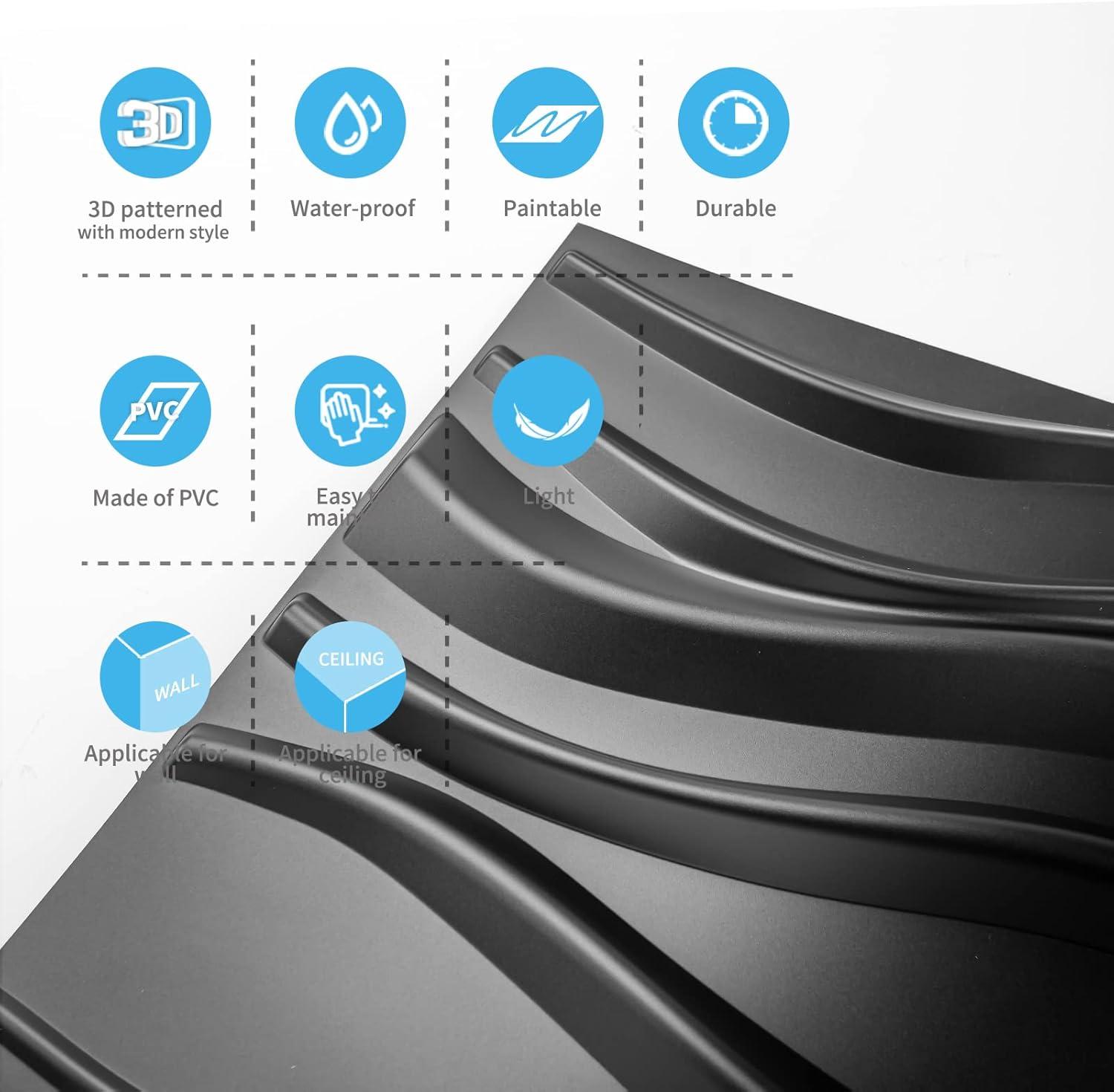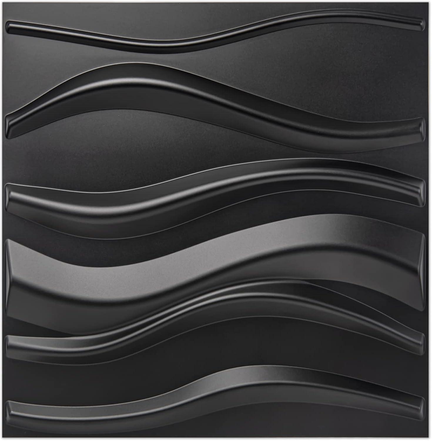 Art3d 19.7" x 19.7" (Pack Of 12) Wall Panel Wave, White(Wave 3-Black)