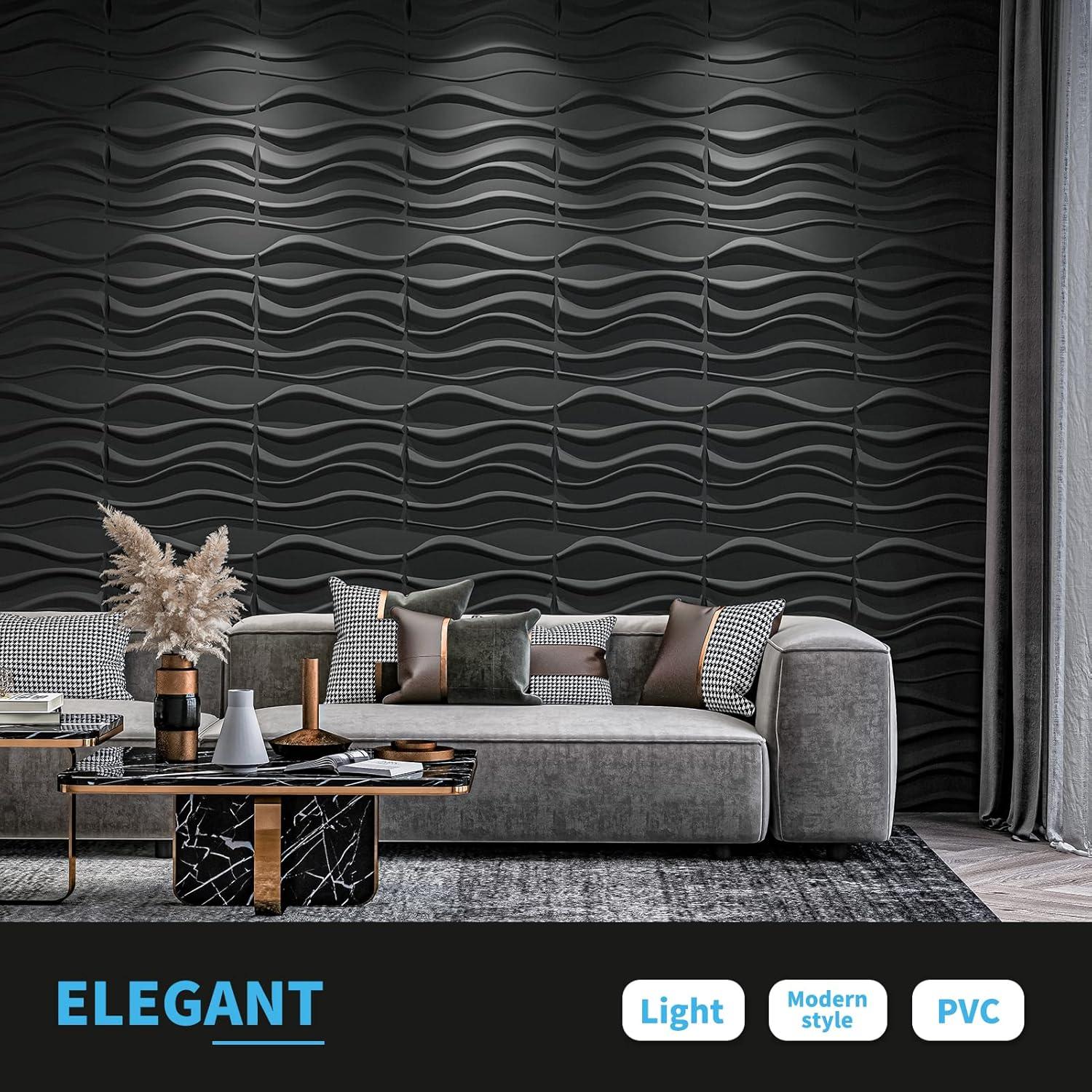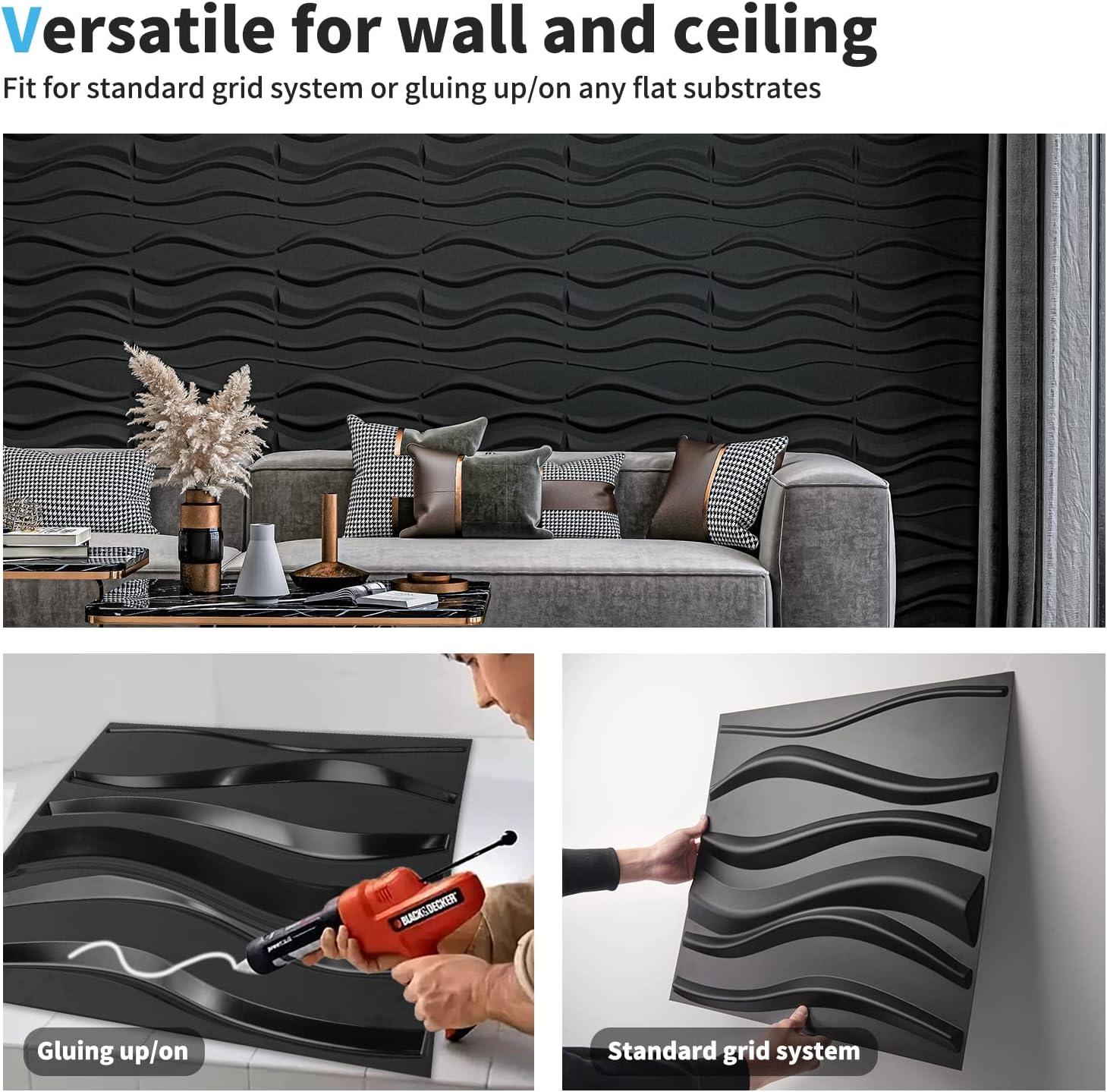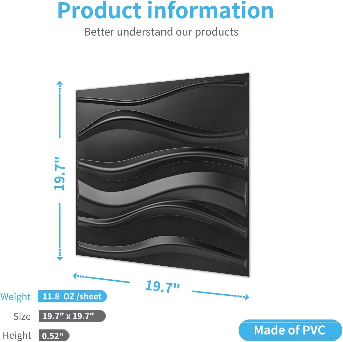 Art3d 19.7″ x 19.7″ (Pack Of 12) Wall Panel Wave, White(Wave 3-Black)