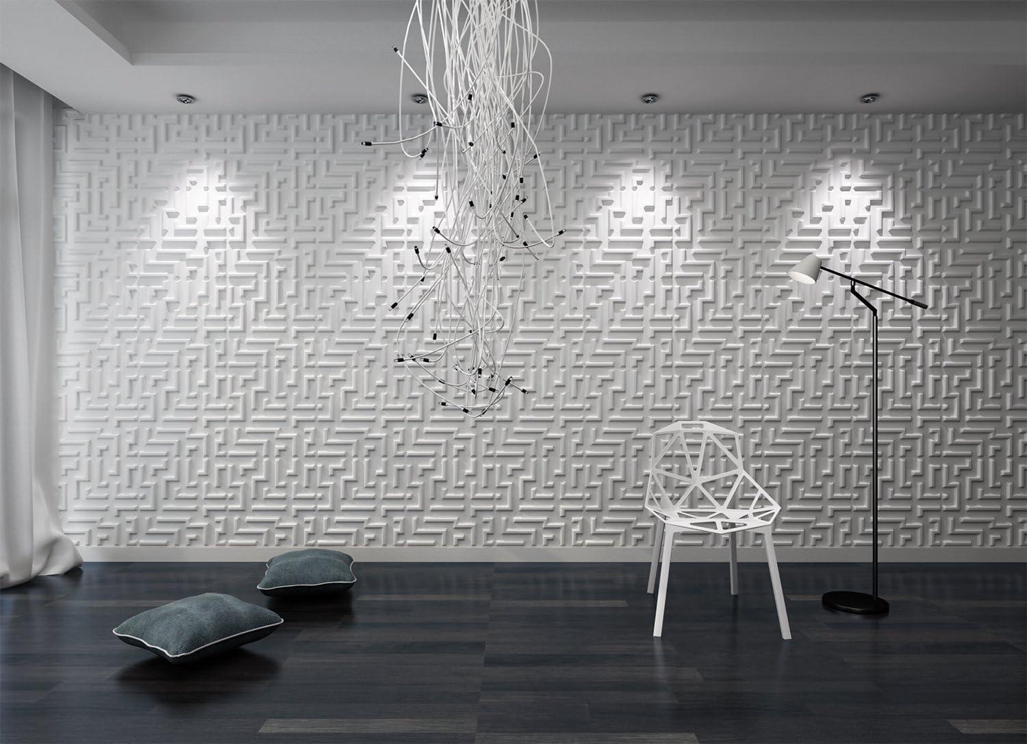 imageArt3d 197quotx197quot Pack Of 12 Wall Panel Vortex WhiteLabyrinth White