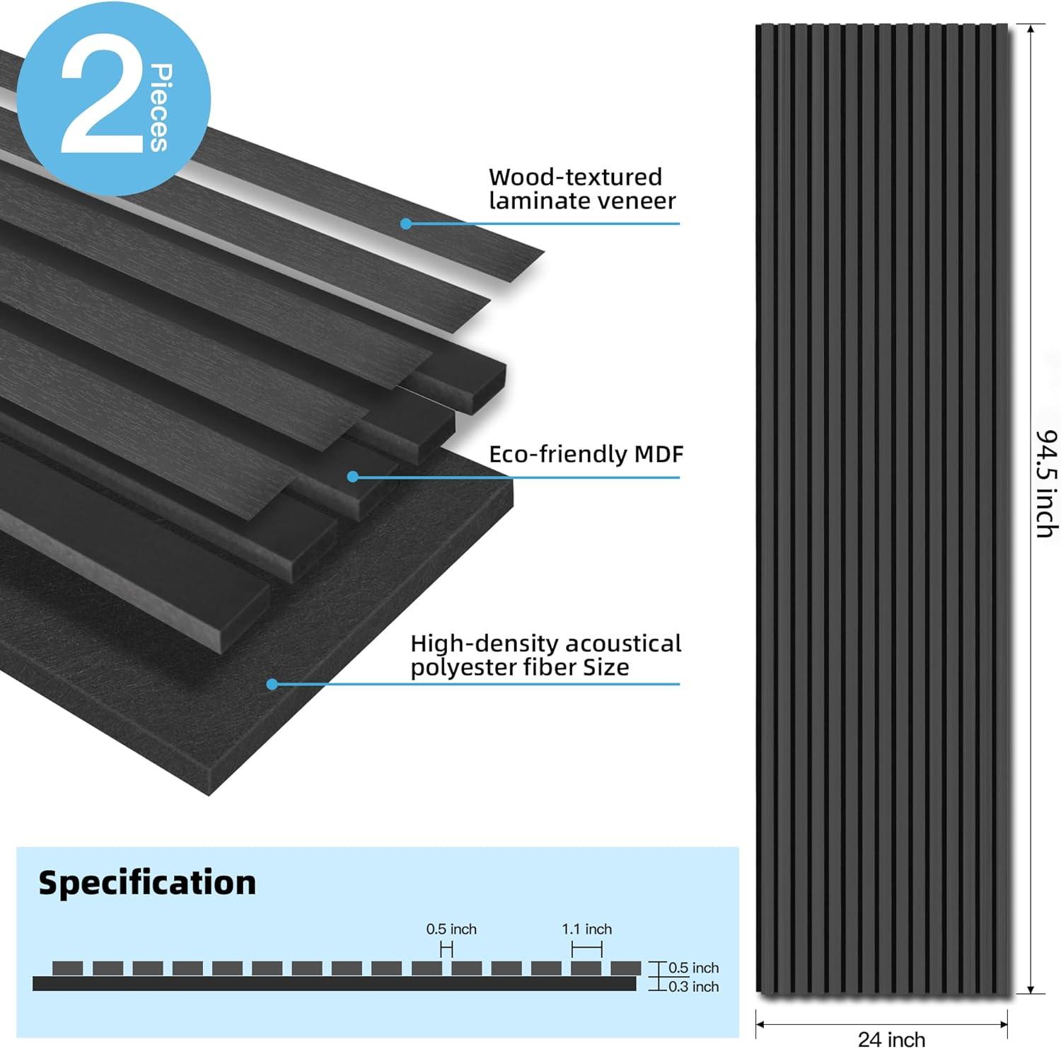 【Package Includes】- 2-pack acoustic wood slat wall panels, each measuring 94.5″ x 24″, covering approximately 31 sq.ft. Recommended to purchase a sample pack first to select the color and style for your project