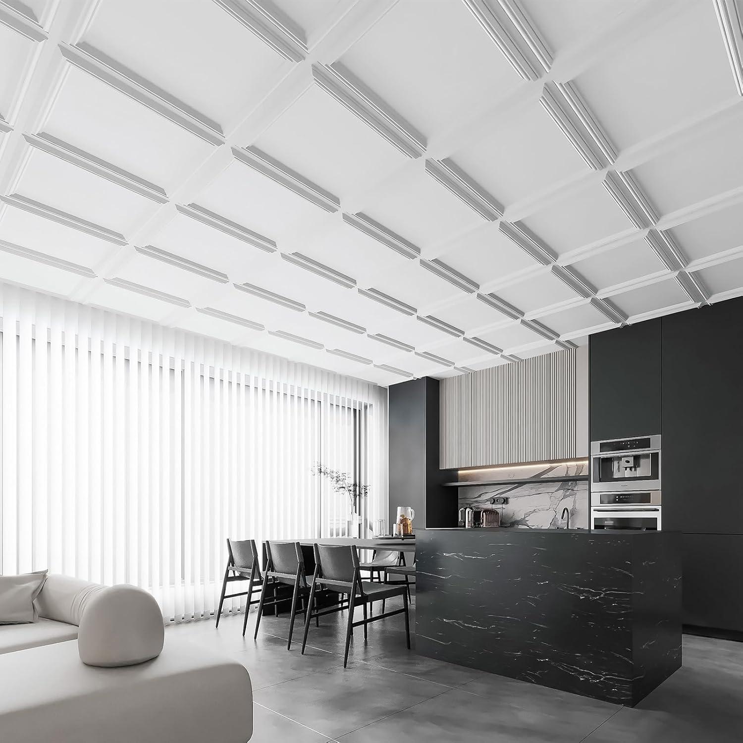 Durable & Lightweight – The tiles are made from lightweight, yet durable PVC material, ideal for ceiling applications in kitchens, offices, and more
