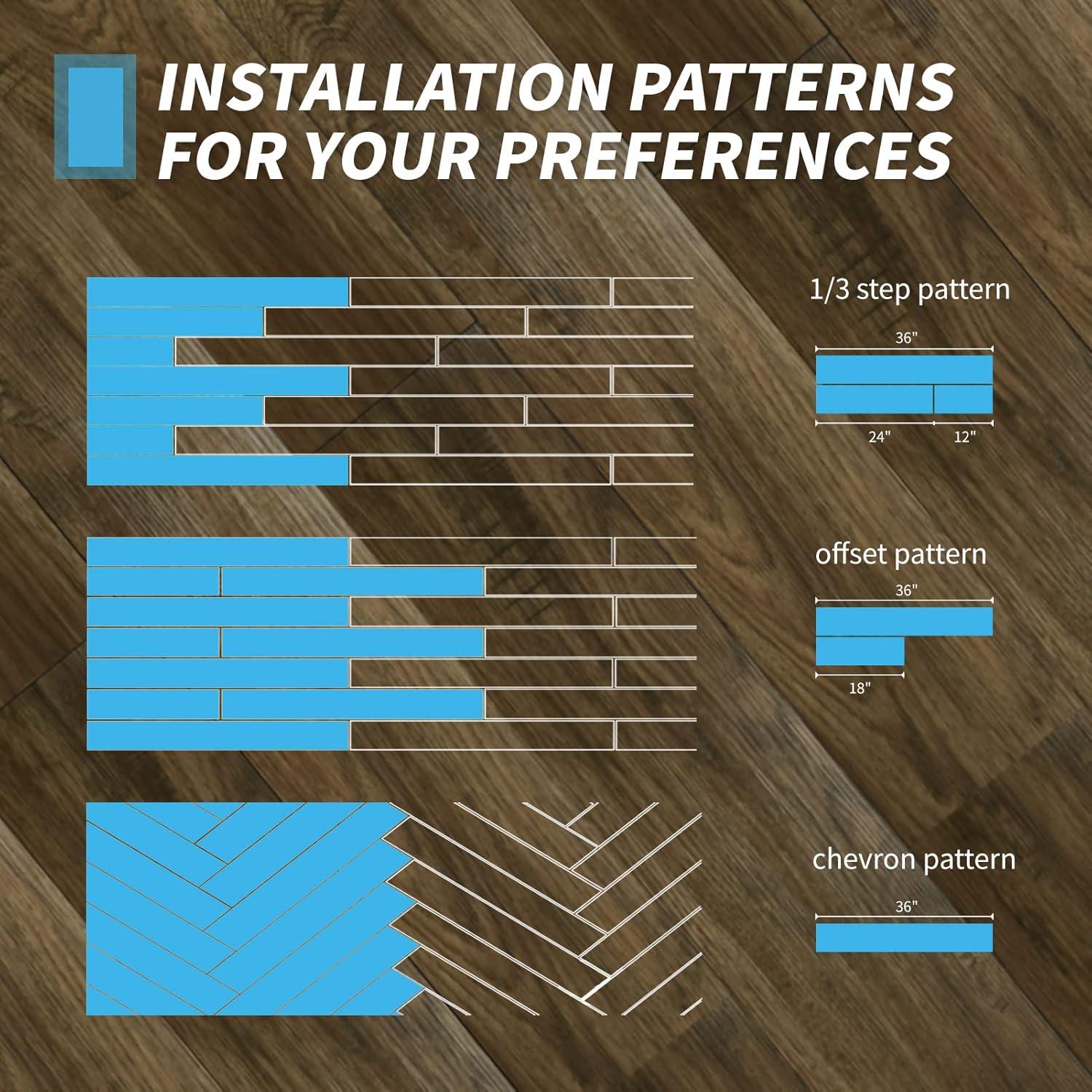 Packaging Detail – Plank dimension: 6″ width x 36″ length, pack of 36 pcs, covers 54 sq.ft.