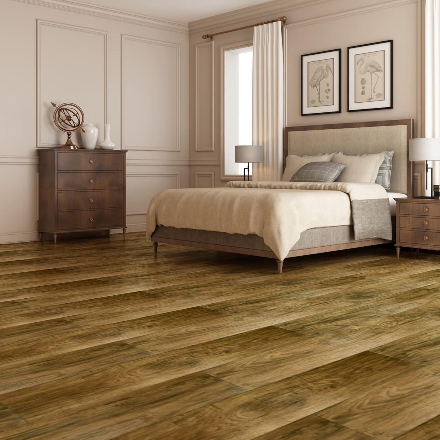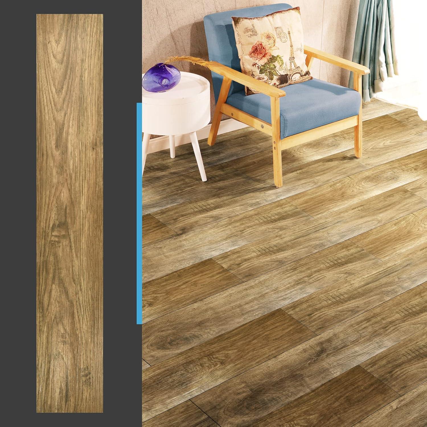 imageArt3d 36Pack 54 Sqft Peel and Stick Floor Tiles Vinyl Plank Flooring Wood Look Adhesive and Waterproof Tile Sticker for Bedroom Living Room Kitchen RV in WhiteAspen Yellow