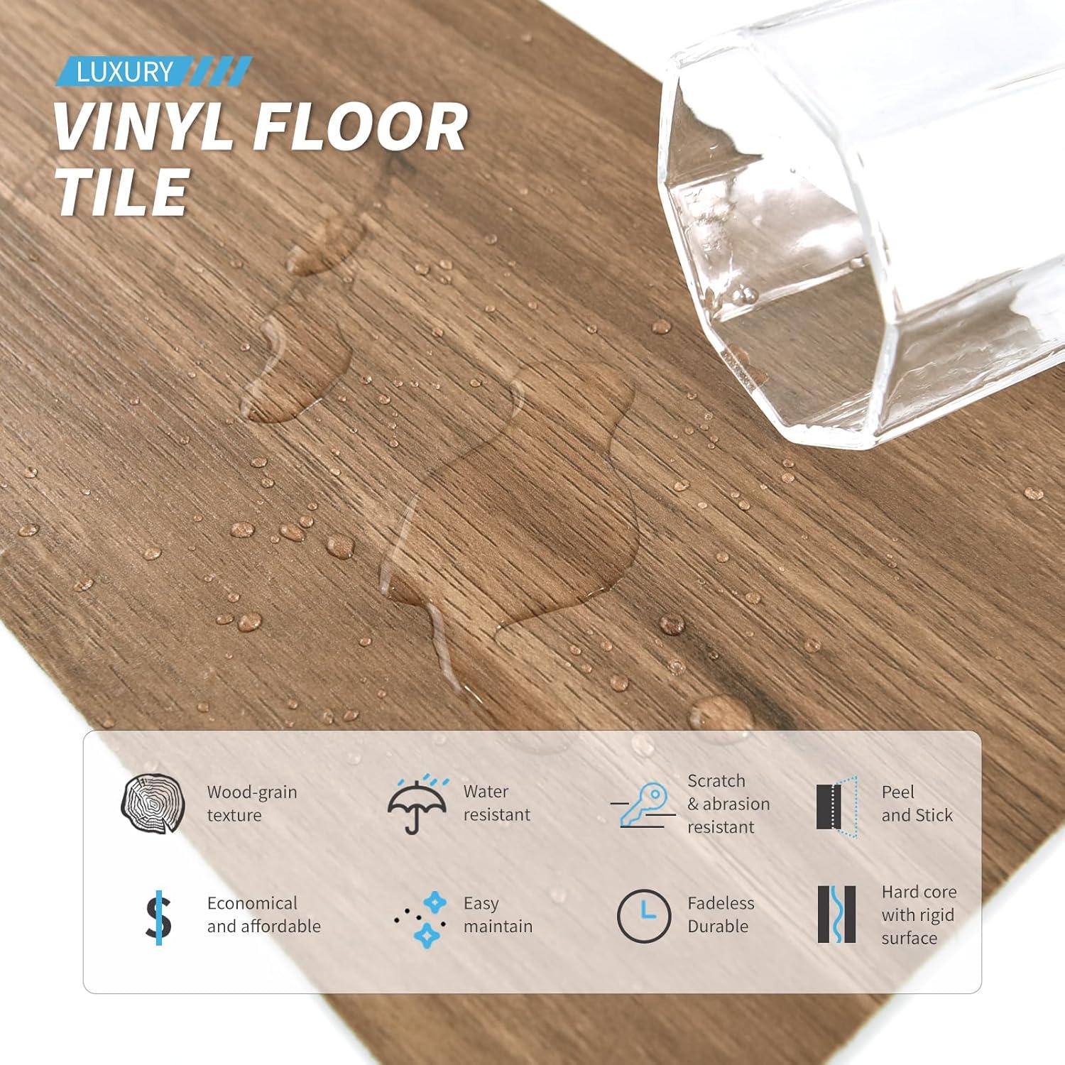 imageArt3d 36Pack 54 Sqft Peel and Stick Floor Tiles Vinyl Plank Flooring Wood Look Adhesive and Waterproof Tile Sticker for Bedroom Living Room Kitchen RV in WhiteRosewood