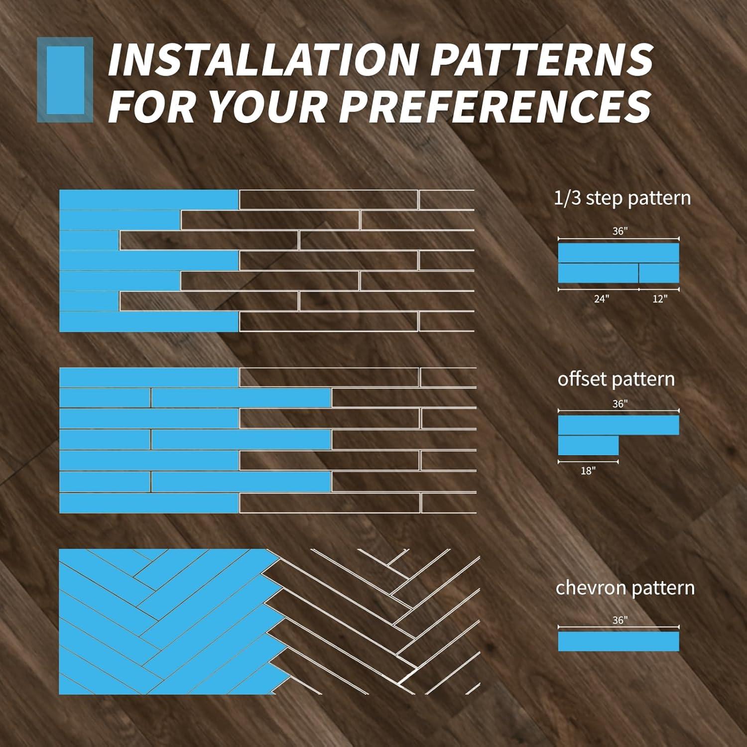 Packaging Detail – Plank dimension: 6″ width x 36″ length, pack of 36 pcs, covers 54 sq.ft.