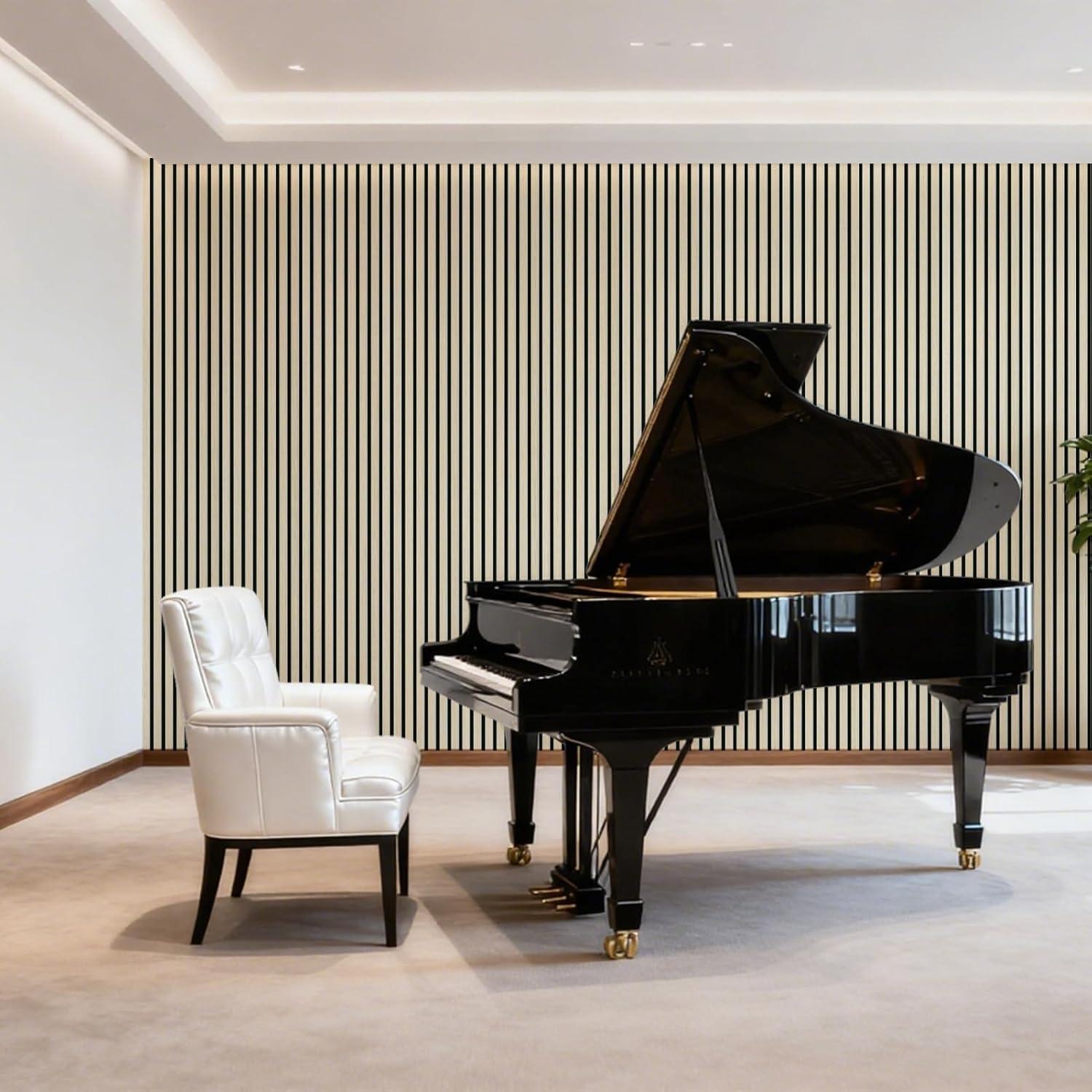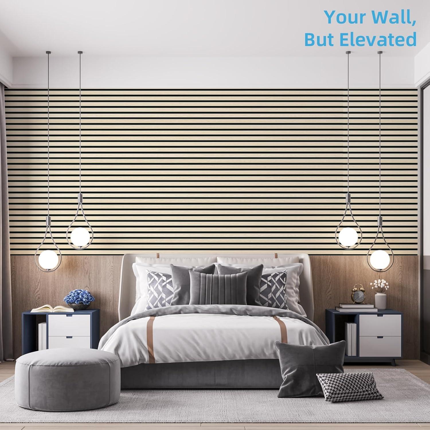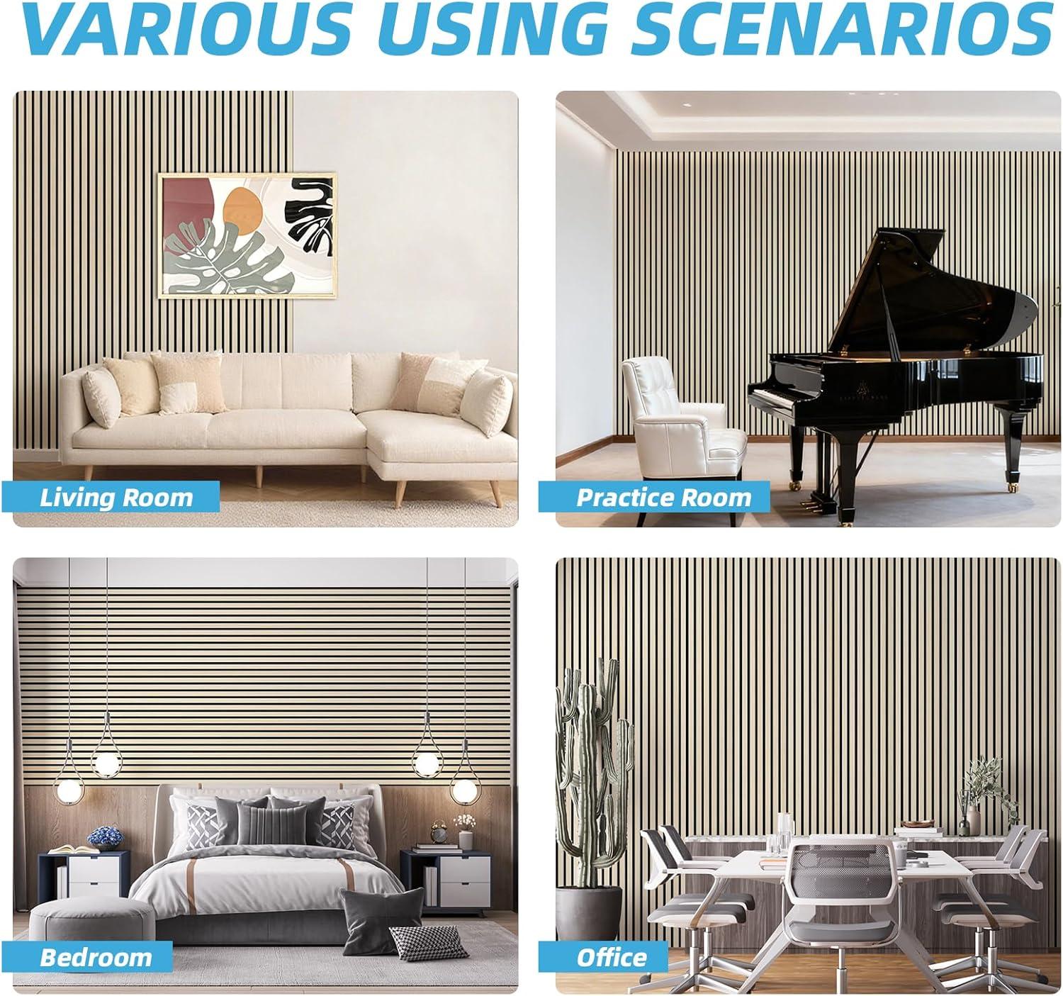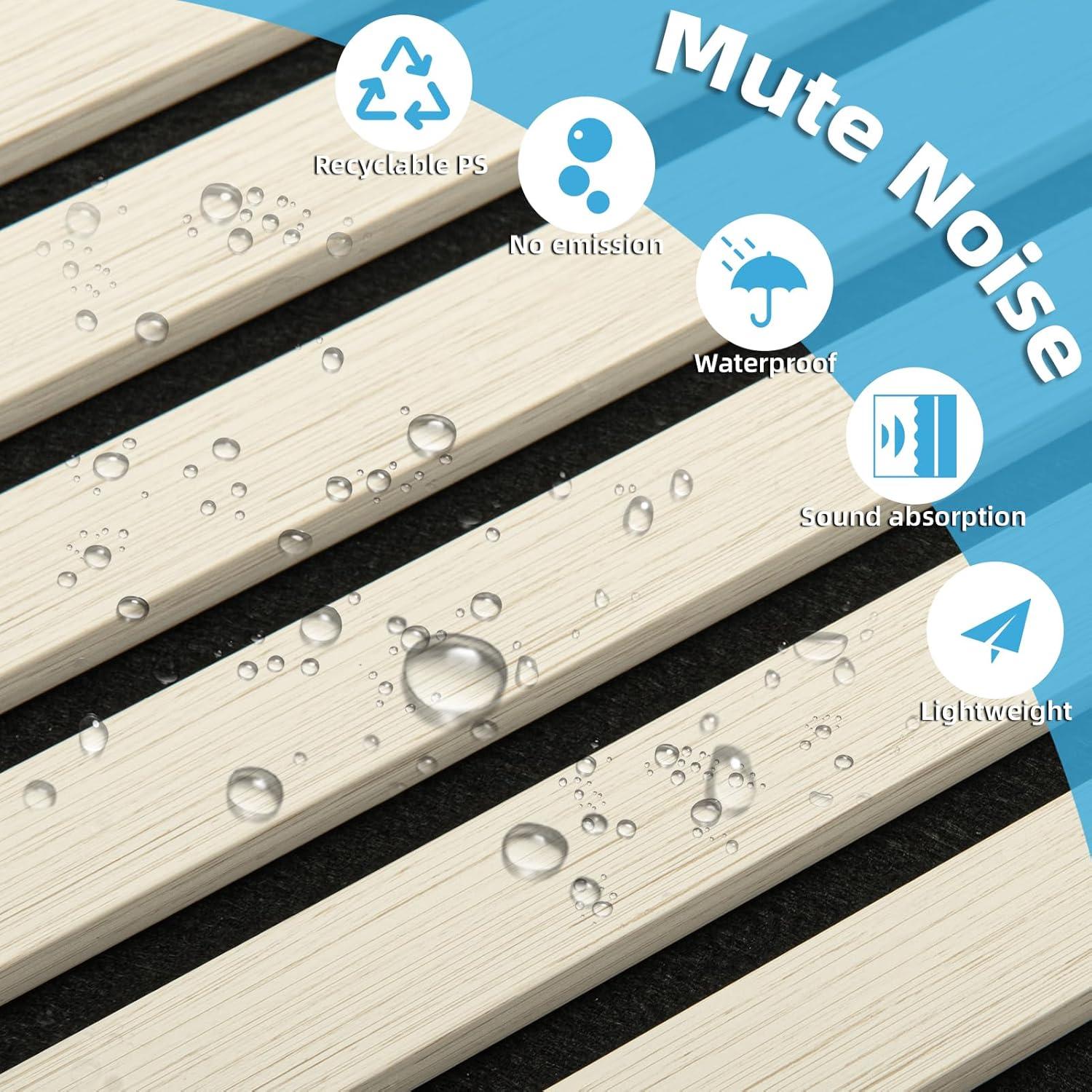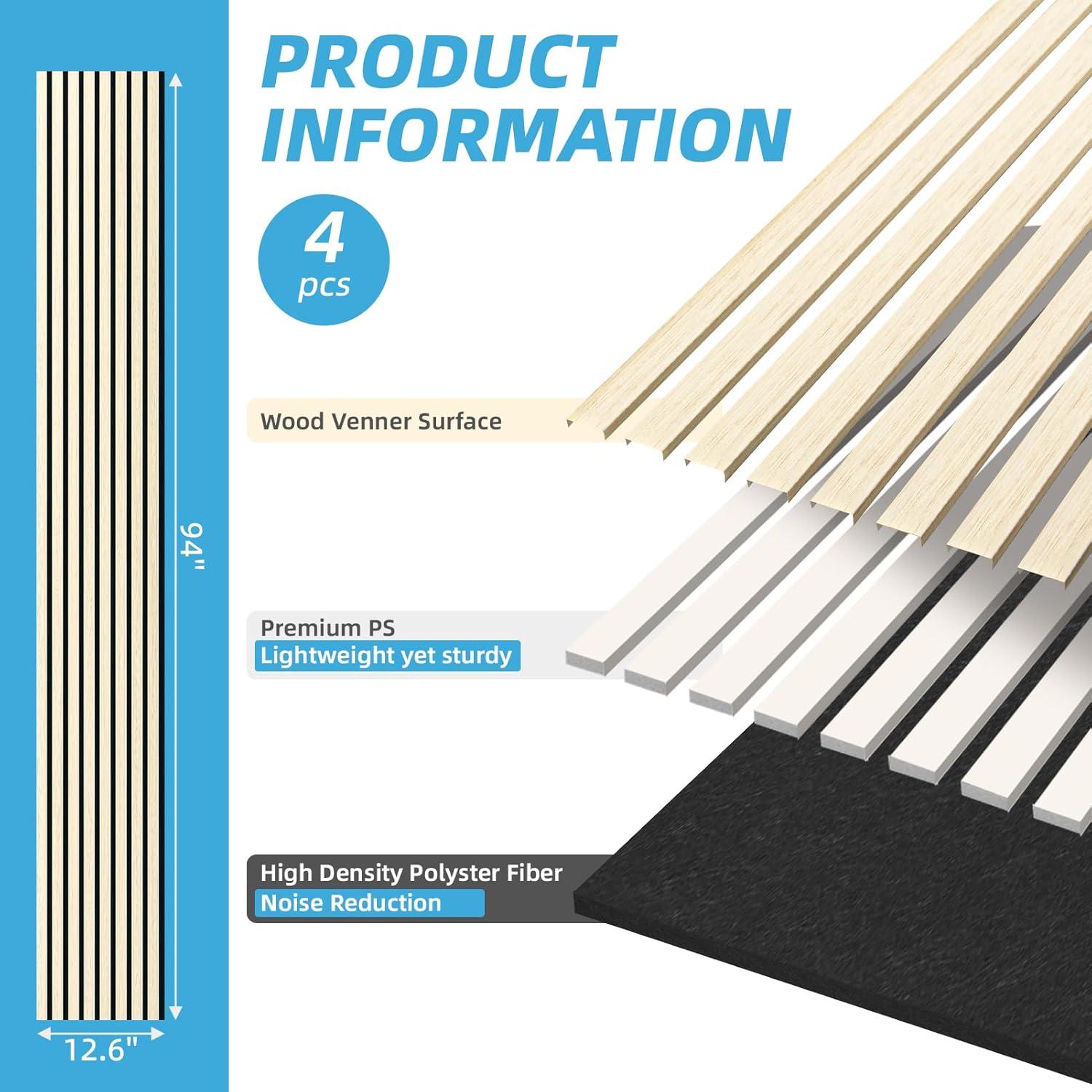 Art3d 4-Piece 94 x 12.6 Inch Acoustic Lightweight Slat Wall Panel - Waterproof Wood Textured Wainscoting Panel of 33 Sq.Ft for Bedroom, Home Theater Office Accent Wall, White Elm(White Elm)
