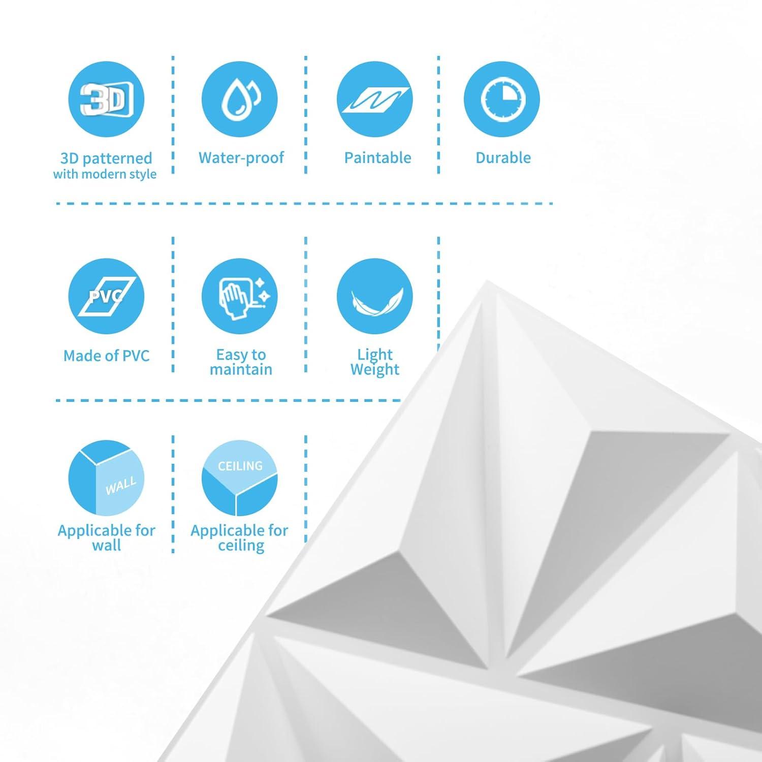What You Get: Come in 6 tiles/Box decorative wall panels square in White which can covers 46.2 Sq.Ft