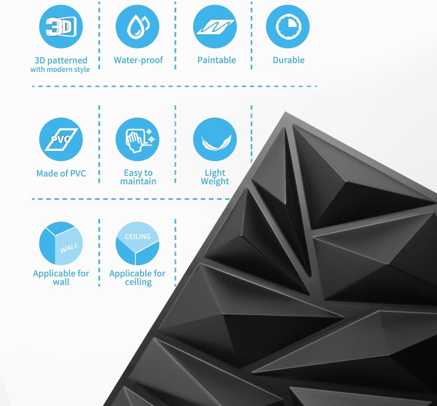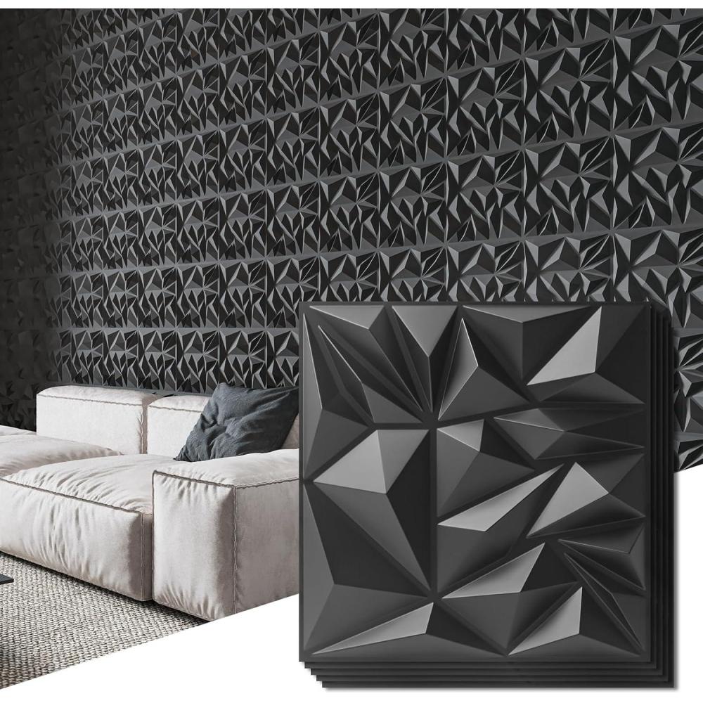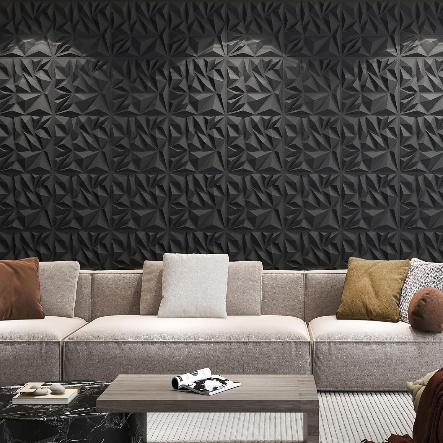 Art3d 50-Pack 3D Wall Panels for Interior Wall Decor, Modern Diamond Textured Accent Wall Paneling for Gaming Living Room TV Wall Background, 12 x 12 inch White(Black)