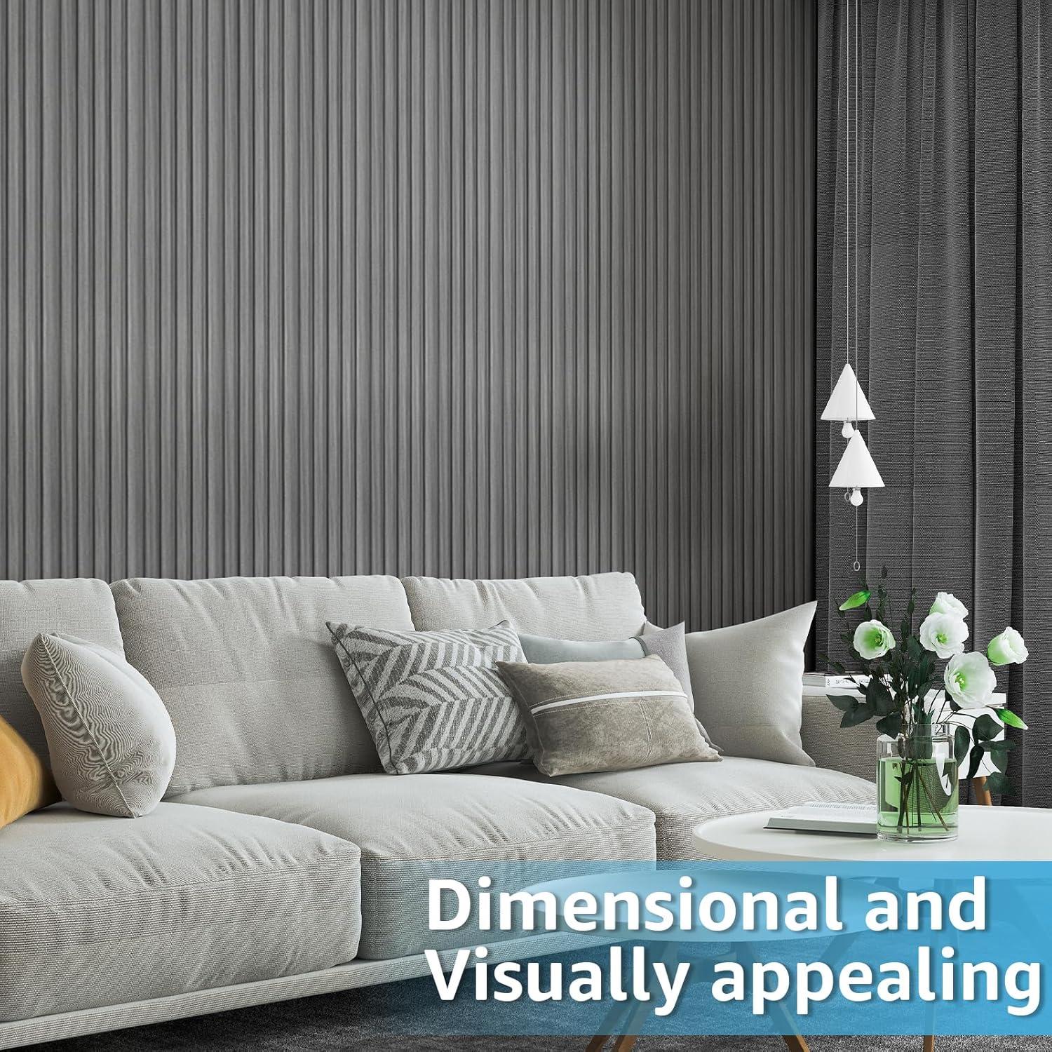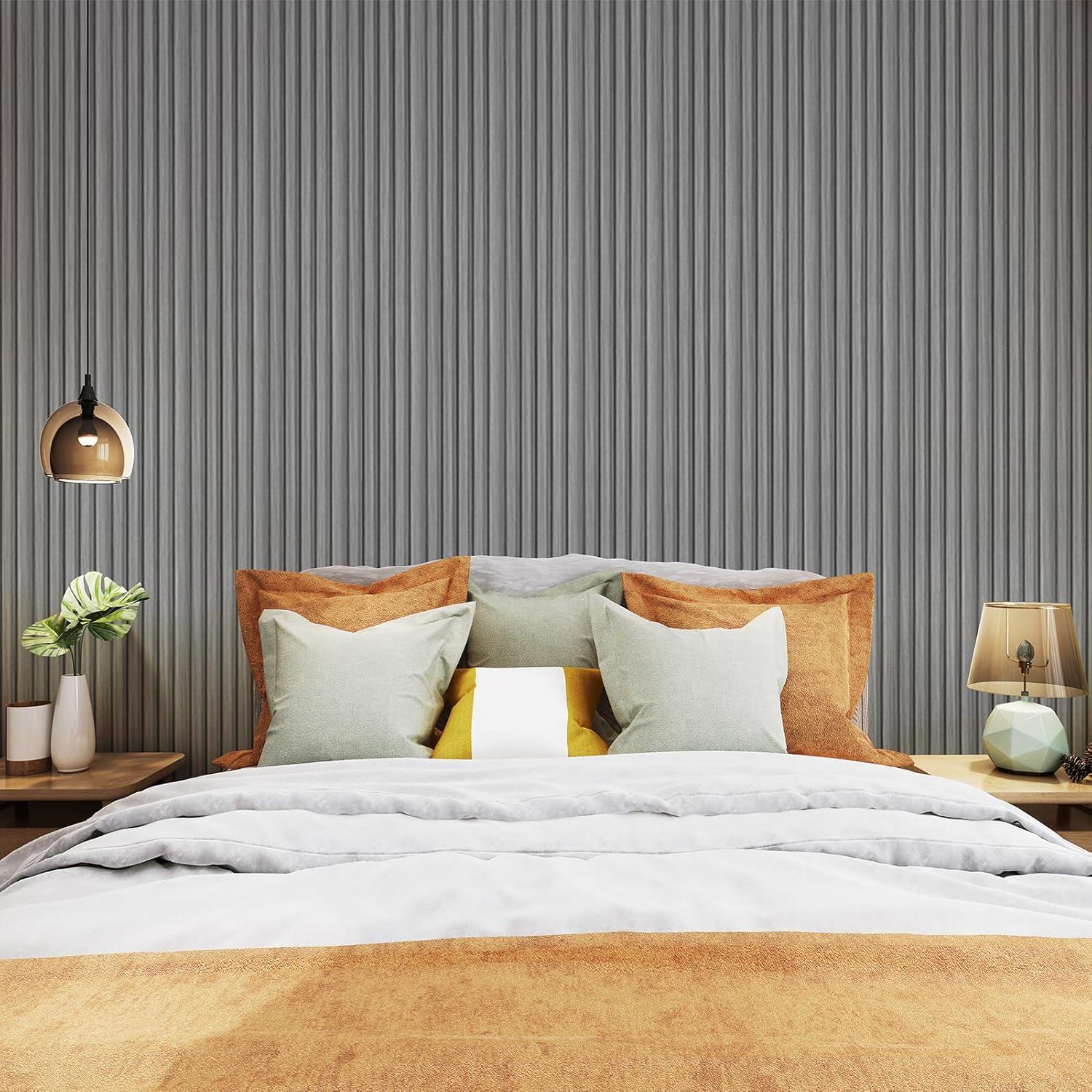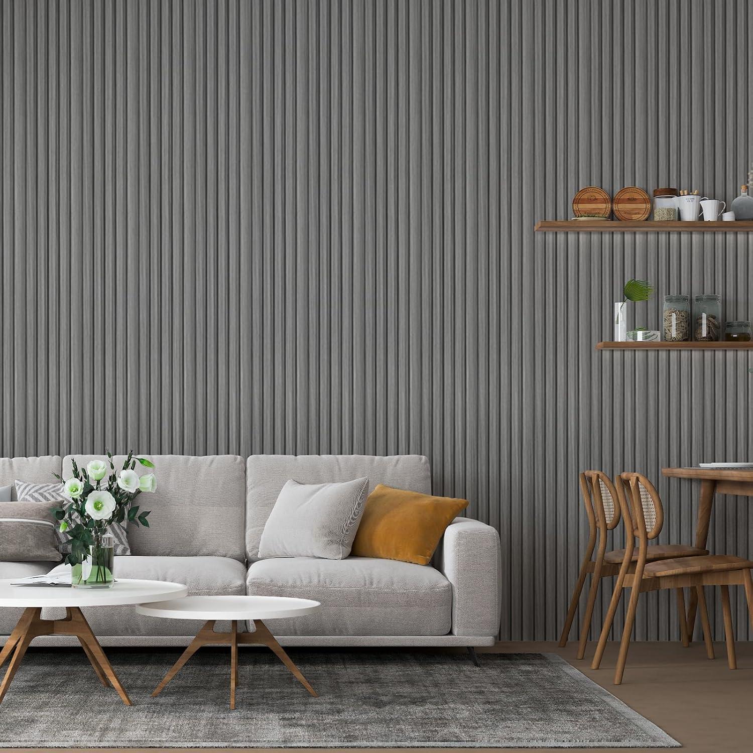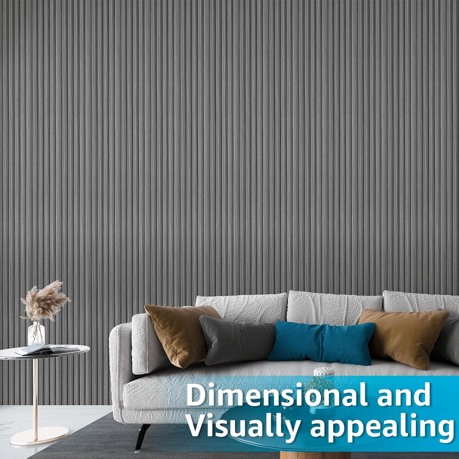 Art3d 8 Pack 96″ x 6″ WPC Slat Wall Panels, 3D Fluted Panel for Interior Wall Decor, TV Background, Bedroom, Living Room – Gray Oak(Gray Oak-Square)