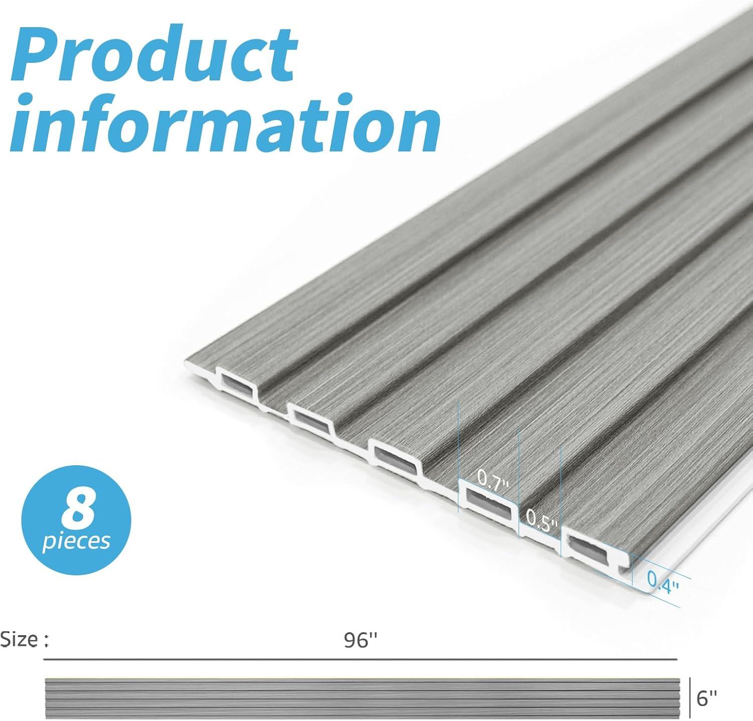 Art3d 8 Pack 96" x 6" WPC Slat Wall Panels, 3D Fluted Panel for Interior Wall Decor, TV Background, Bedroom, Living Room - Gray Oak(Gray Oak-Square)