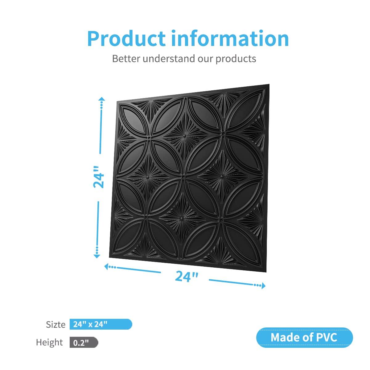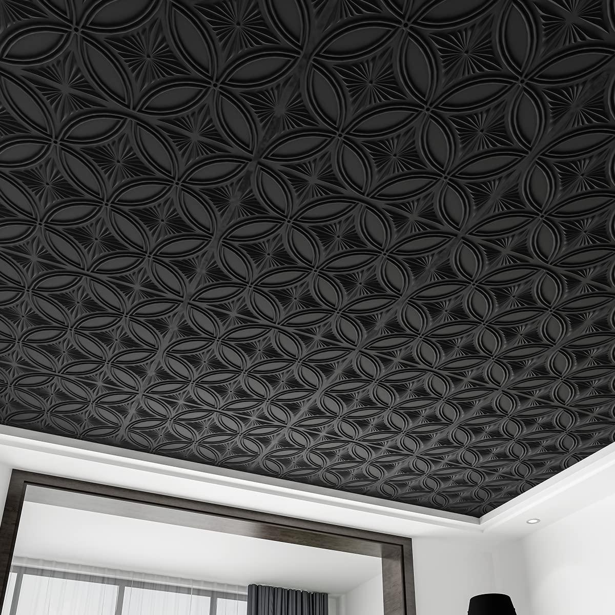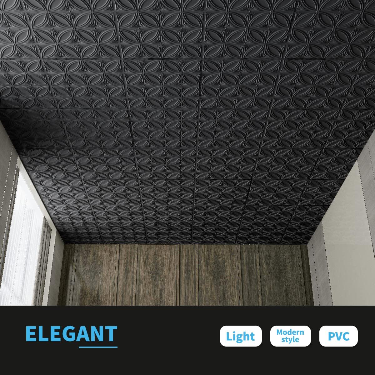 Art3d Decorative PVC Drop Ceiling Tile 2ft x 2ft in White,Glue up Ceiling Panel 24 x 24in.12pcs(Black)