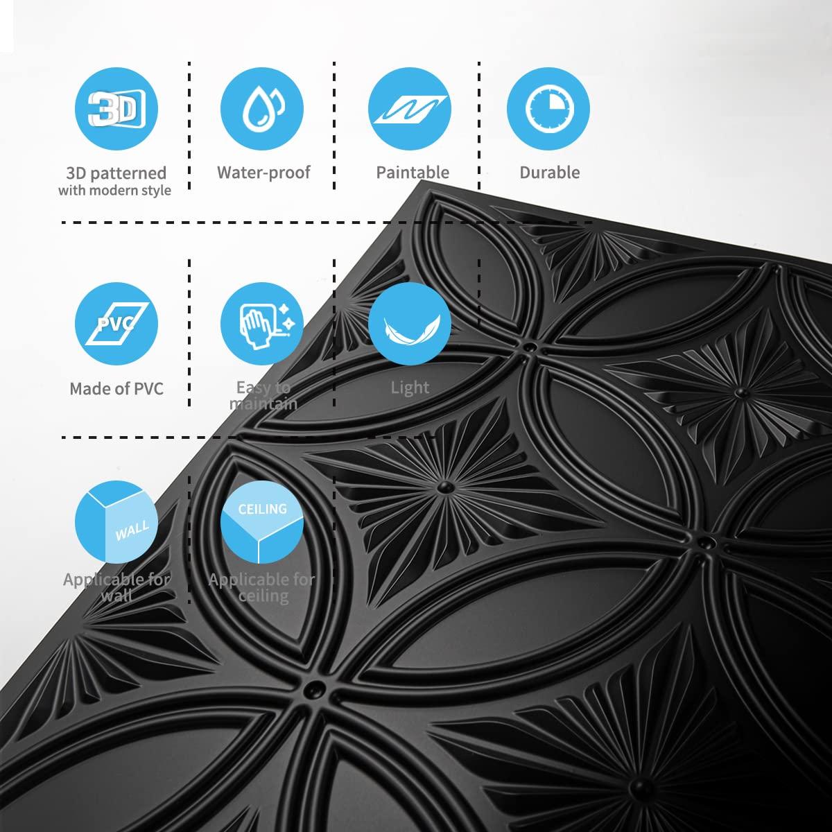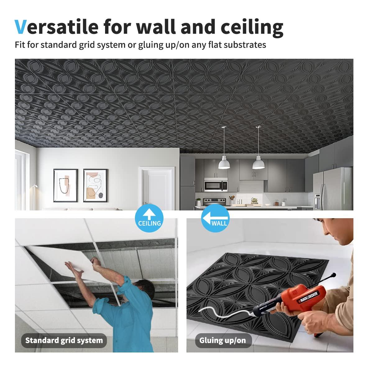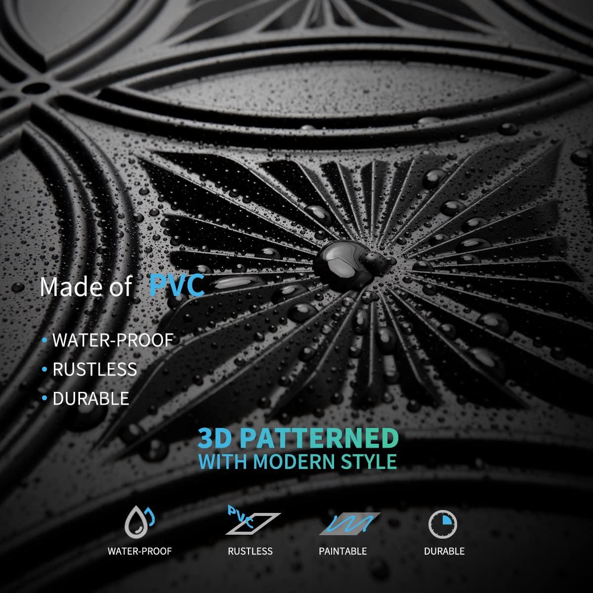 Art3d Decorative PVC Drop Ceiling Tile 2ft x 2ft in White,Glue up Ceiling Panel 24 x 24in.12pcs(Black)