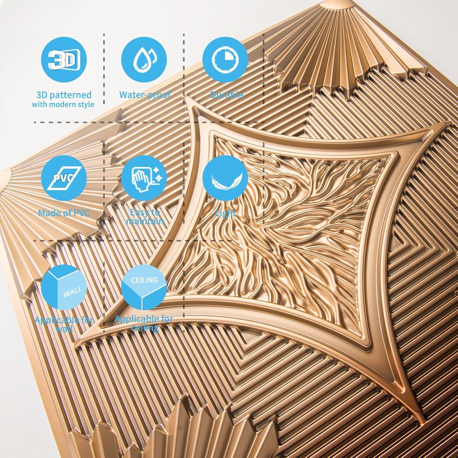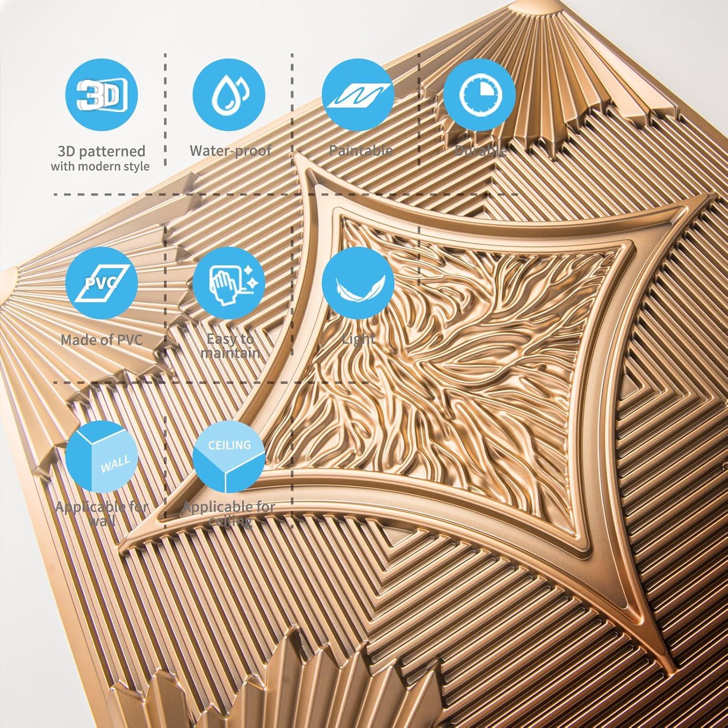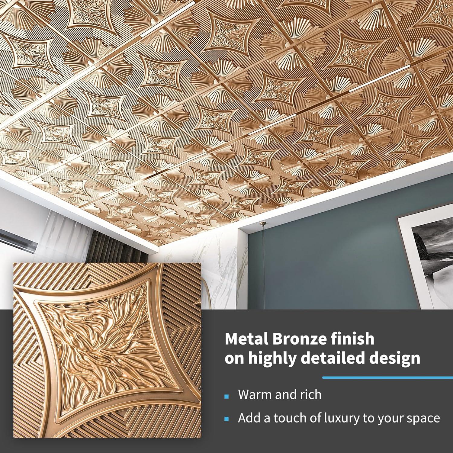 Art3d Drop Ceiling Tiles 24x24 in White (24-Pack, 96 Sq.ft), 3D Wainscoting Panels Glue Up 2x2(Bronze)