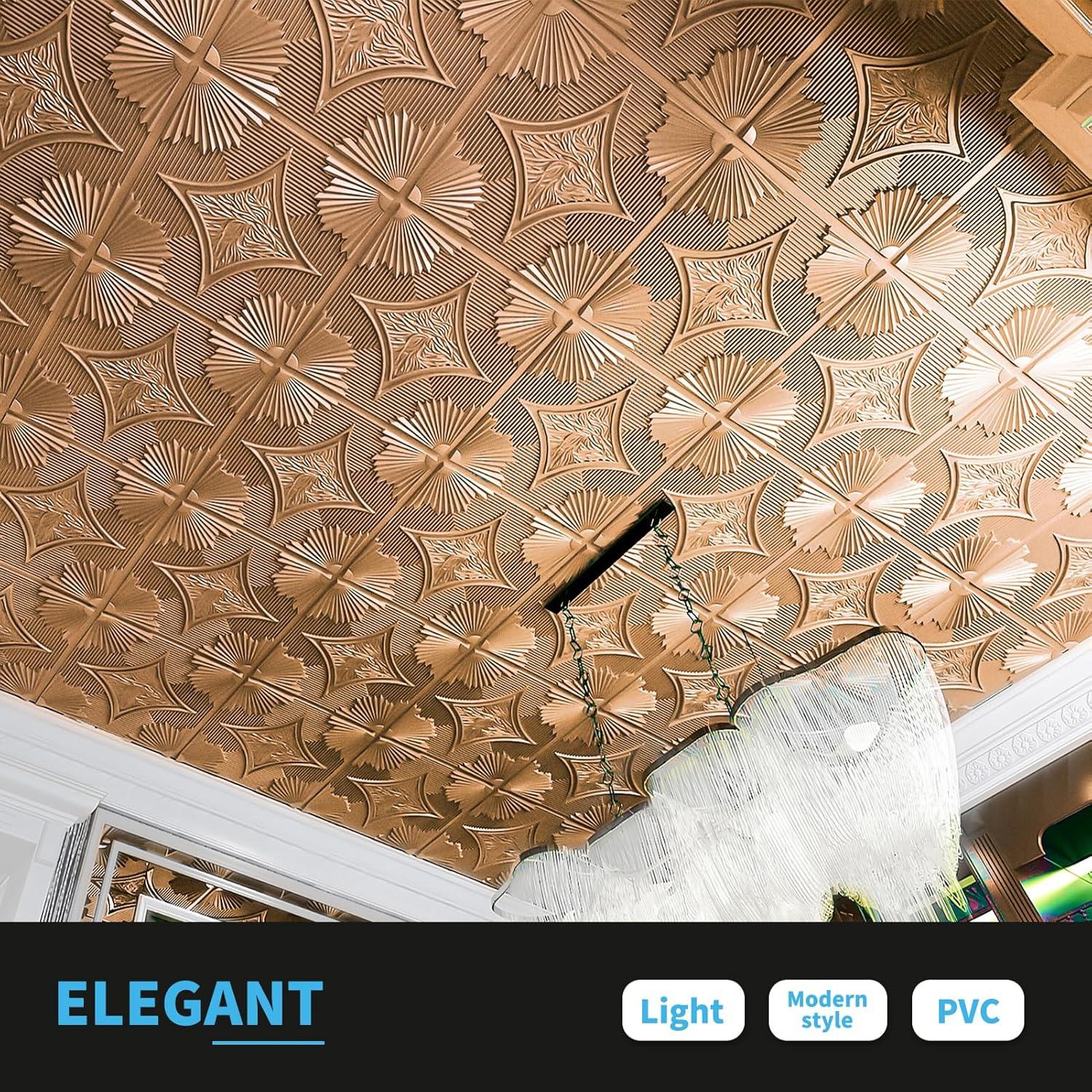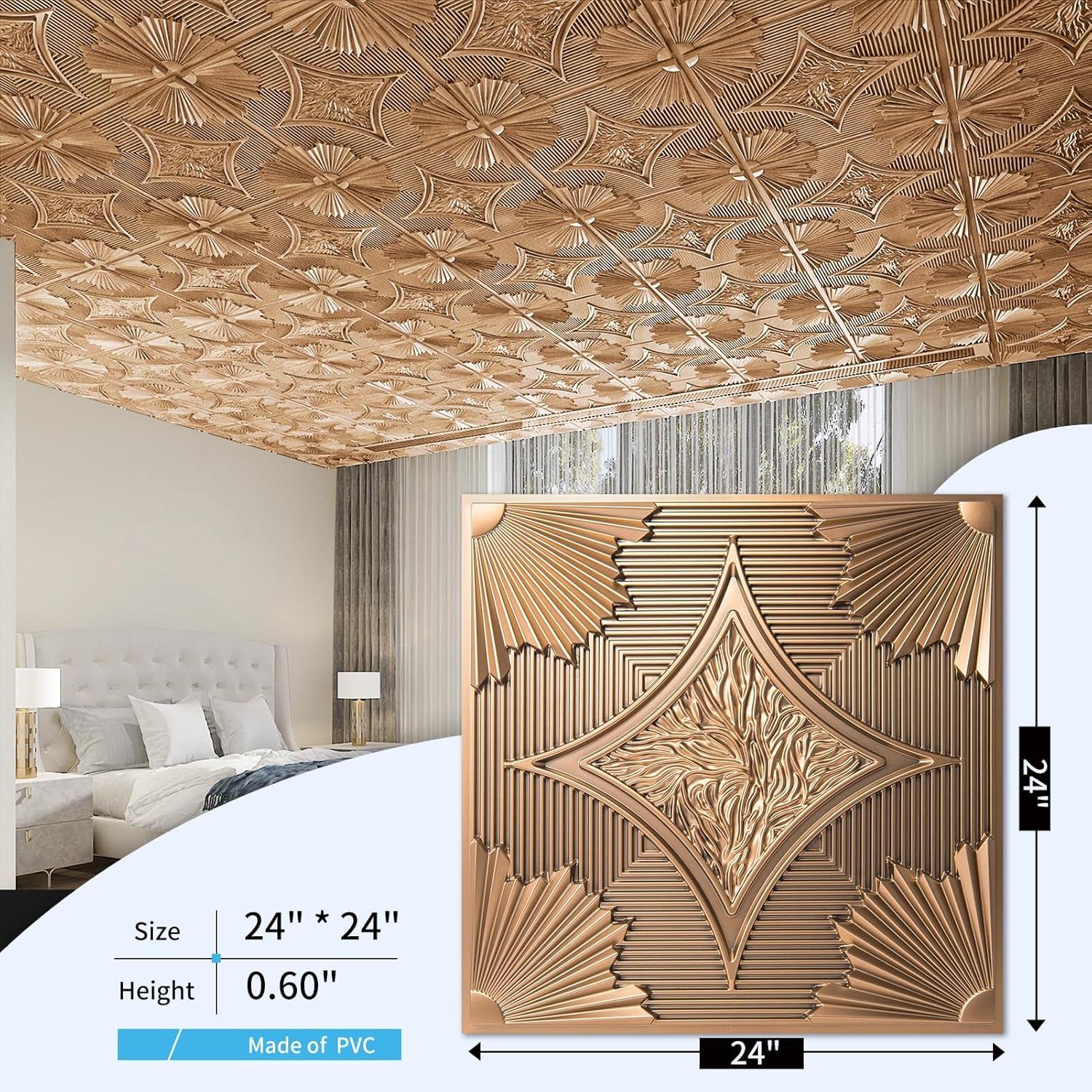 Art3d Drop Ceiling Tiles 24×24 in White (24-Pack, 96 Sq.ft), 3D Wainscoting Panels Glue Up 2×2(Bronze)