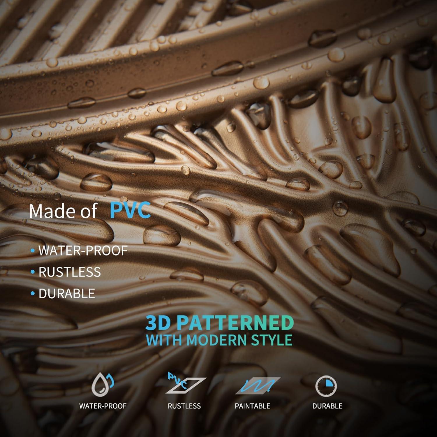 imageArt3d Drop Ceiling Tiles 24x24 in White 24Pack 96 Sqft 3D Wainscoting Panels Glue Up 2x2Bronze