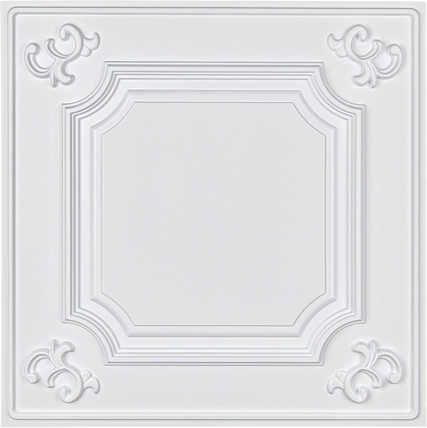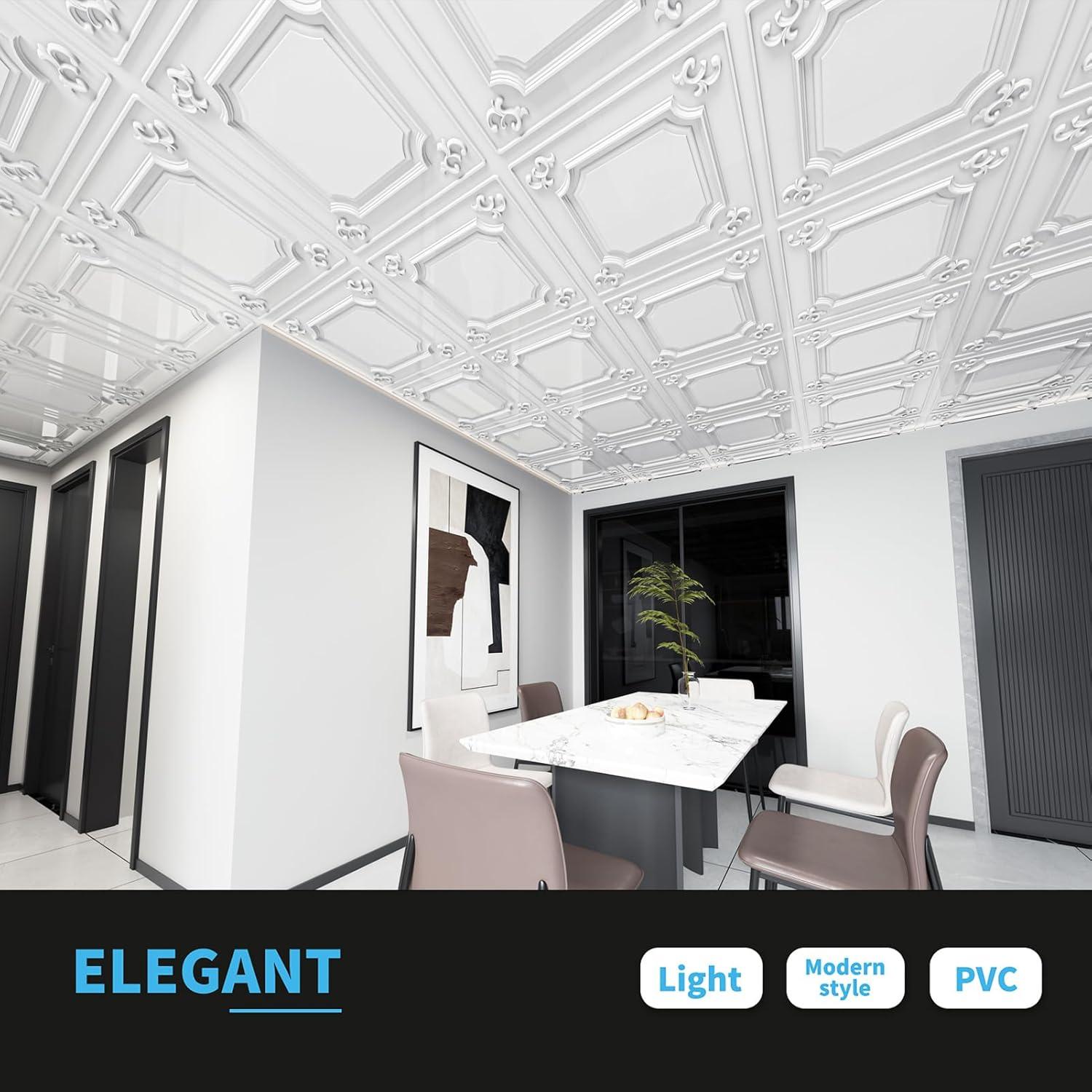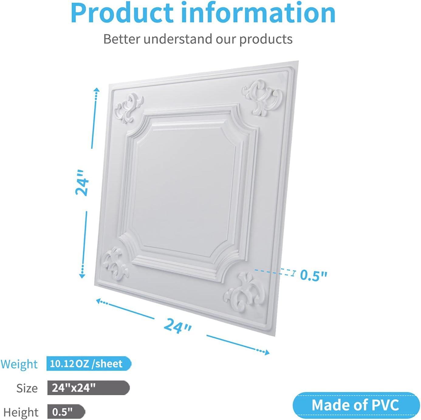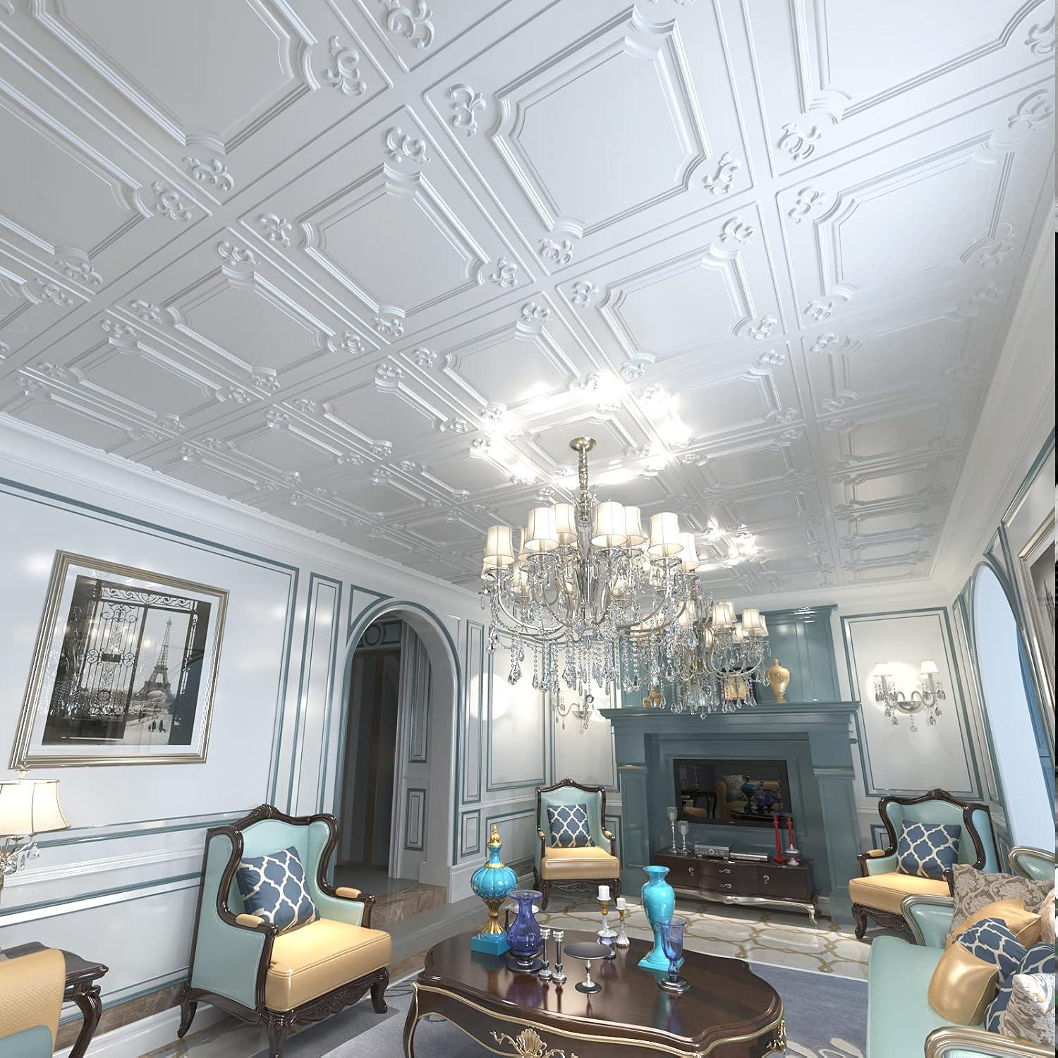 Art3d Drop Ceiling Tiles 24×24 in White (24-Pack, 96 Sq.ft), Wainscoting Panels Glue Up 2×2(White)