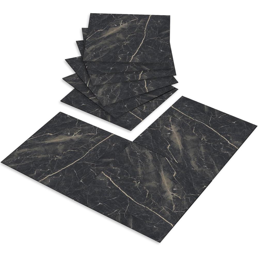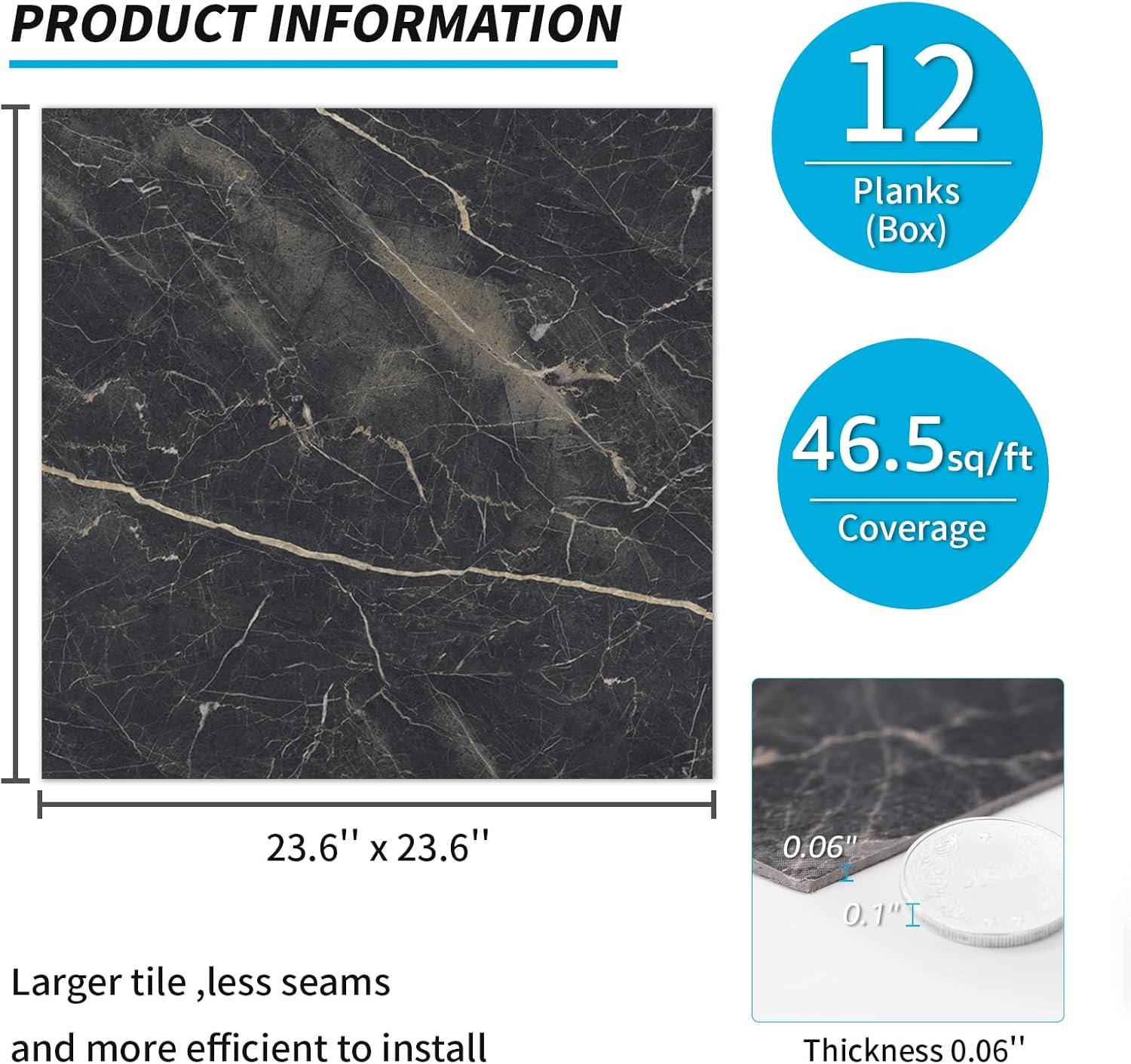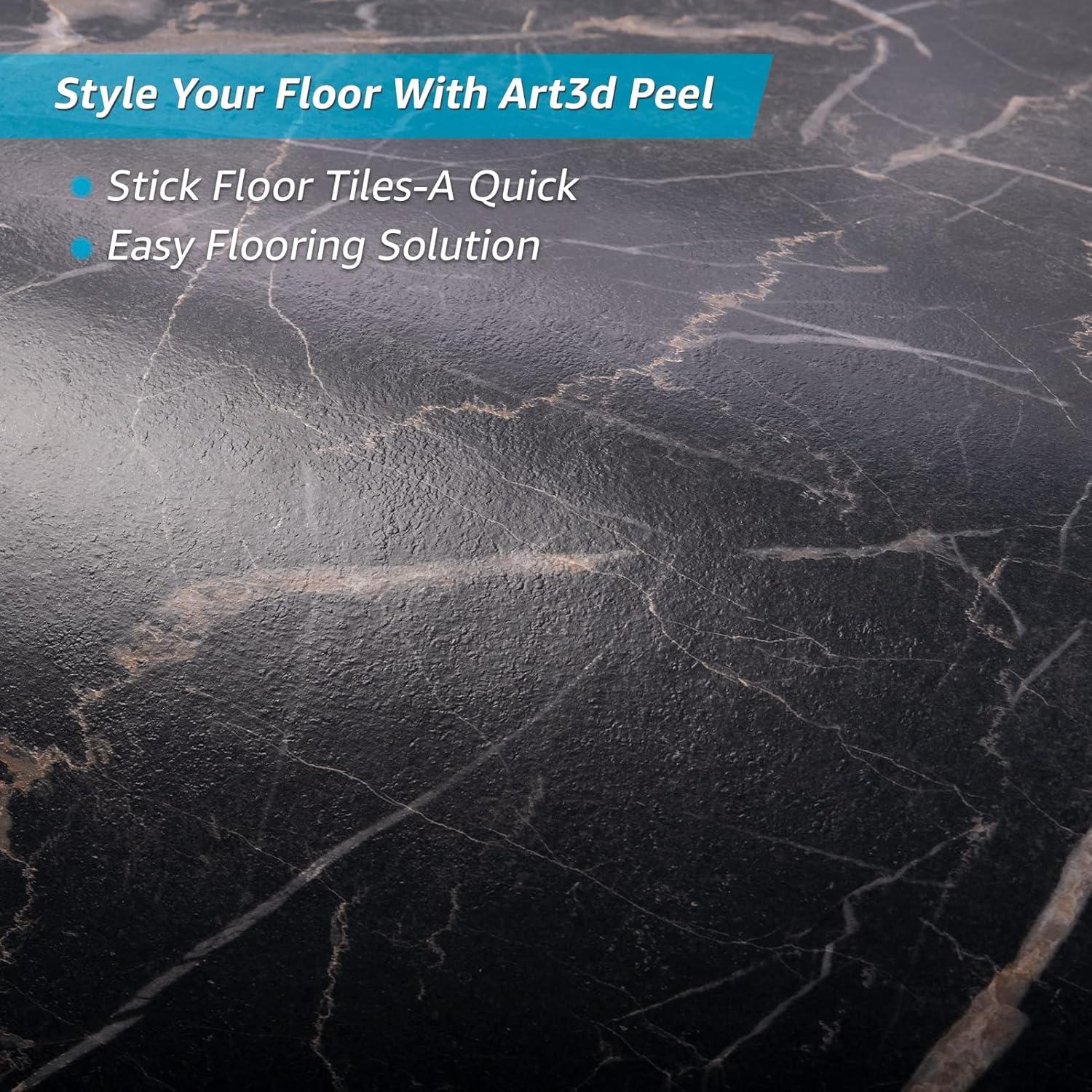 Art3d Large Peel and Stick Floor Tile, 12-Pack 23.6 x 23.6in. Covers 46.5 Sq.ft, Waterproof Vinyl Flooring Tiles Self Adhesive for Kitchen, Bathroom & Bedroom - Dark Marble(Dark Marble)