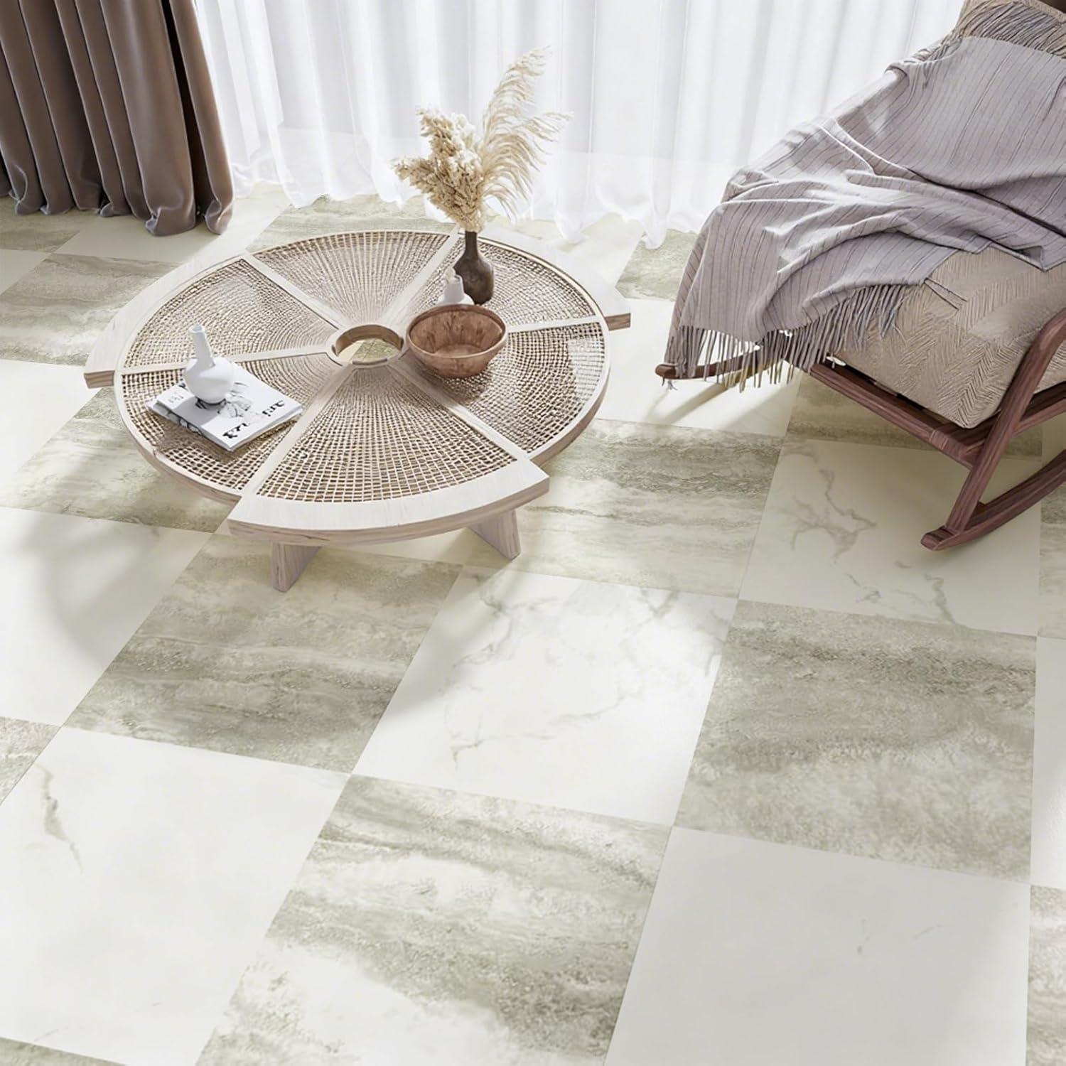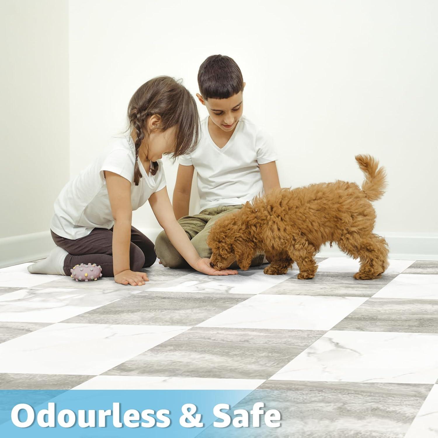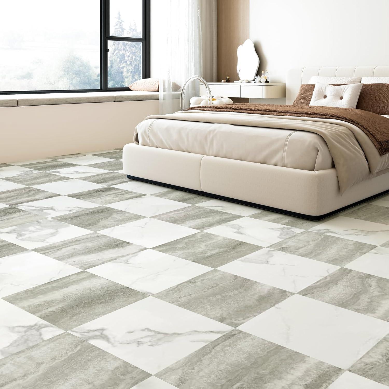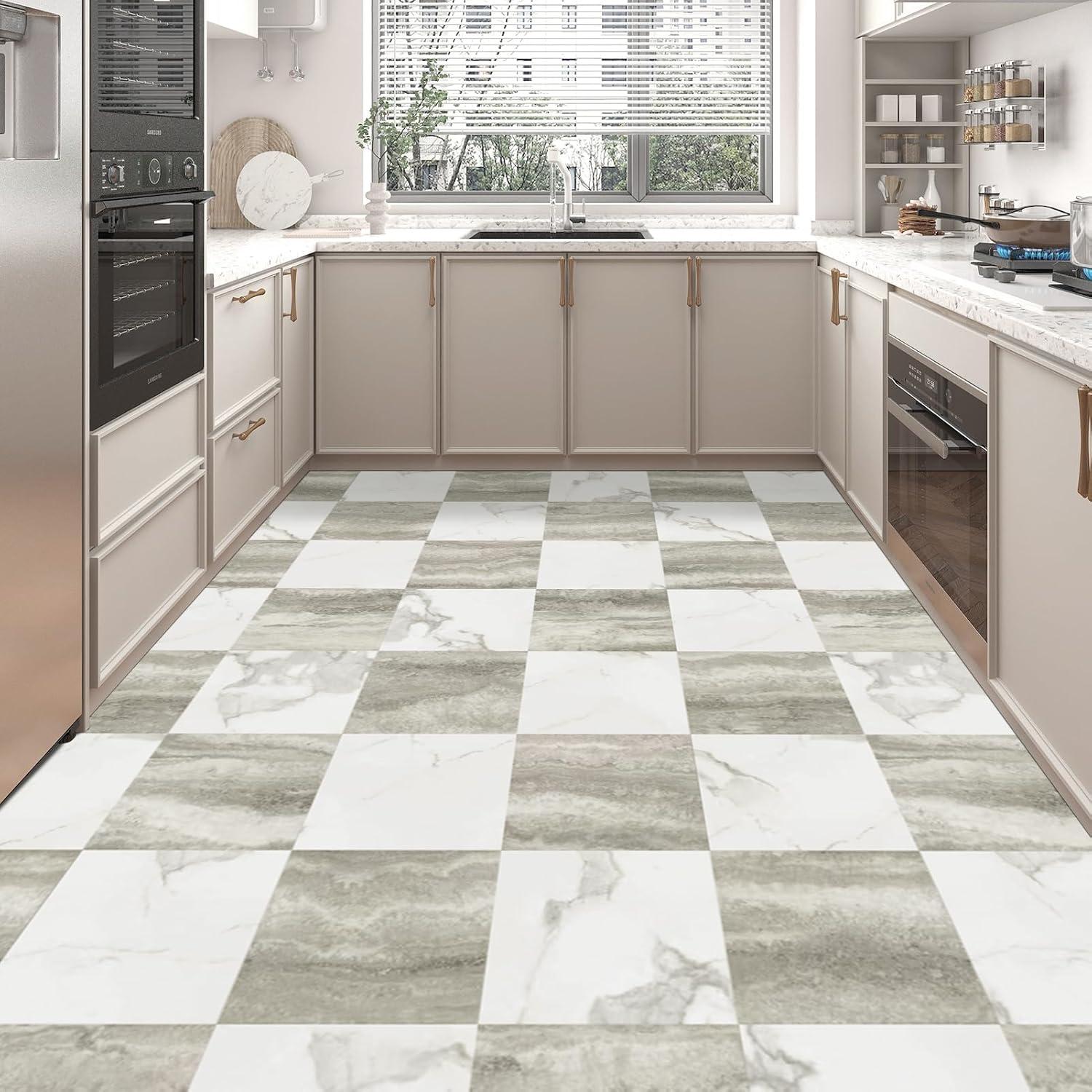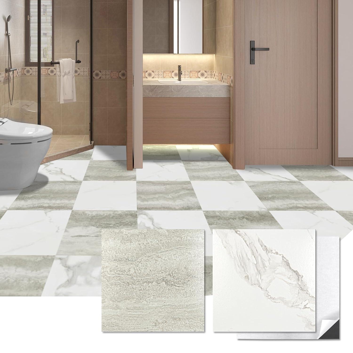 Art3d Peel and Stick Floor Tile, 30-Pack 12 x 12in. Covers 30 Sq.ft, Waterproof Vinyl Flooring Tiles Self Adhesive for Kitchen, Bathroom & Bedroom – White & Beige Marble (15 Tiles per Color)(White Grey Vein Marble)