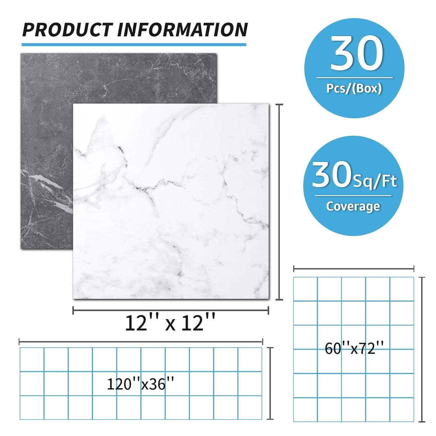 imageArt3d Peel and Stick Floor Tile 30Pack 12 x 12in Covers 30 Sqft Waterproof Vinyl Flooring Tiles Self Adhesive for Kitchen Bathroom ampamp Bedroom  White Grey Vein MarbleDark Marble