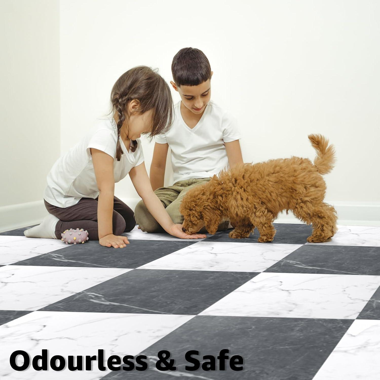Art3d Peel and Stick Floor Tile, 30-Pack 12 x 12in. Covers 30 Sq.ft, Waterproof Vinyl Flooring Tiles Self Adhesive for Kitchen, Bathroom & Bedroom – White Grey Vein Marble(Black/White Marble)