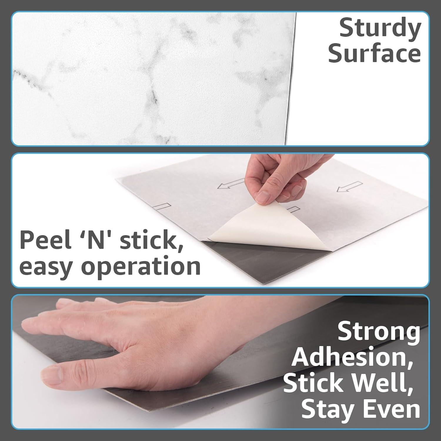 Art3d Peel and Stick Floor Tile, 30-Pack 12 x 12in. Covers 30 Sq.ft, Waterproof Vinyl Flooring Tiles Self Adhesive for Kitchen, Bathroom & Bedroom – White Grey Vein Marble(Dark Marble)