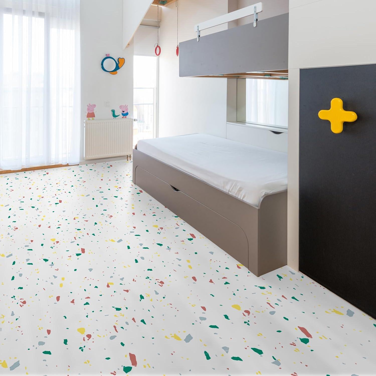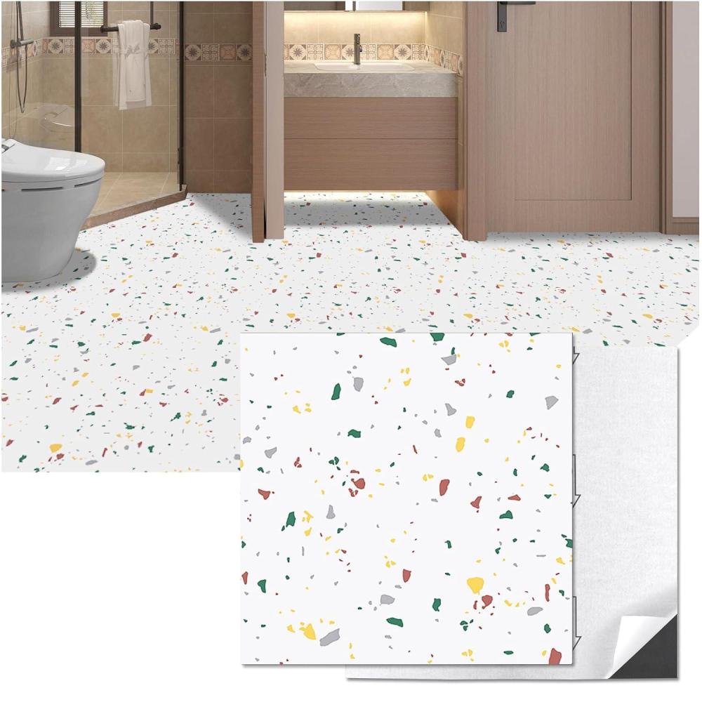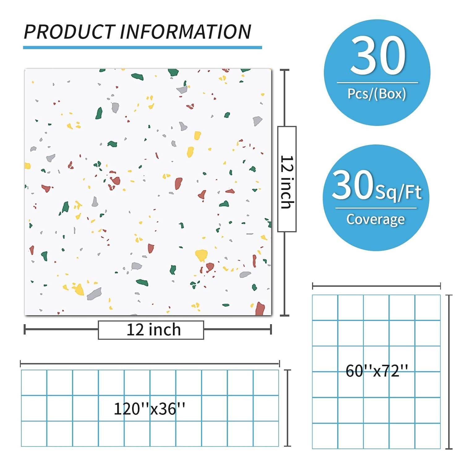imageArt3d Peel and Stick Floor Tile 30Pack 12 x 12in Covers 30 Sqft Waterproof Vinyl Flooring Tiles Self Adhesive for Kitchen Bathroom ampamp Bedroom  White Grey Vein MarbleModern Terrazzo