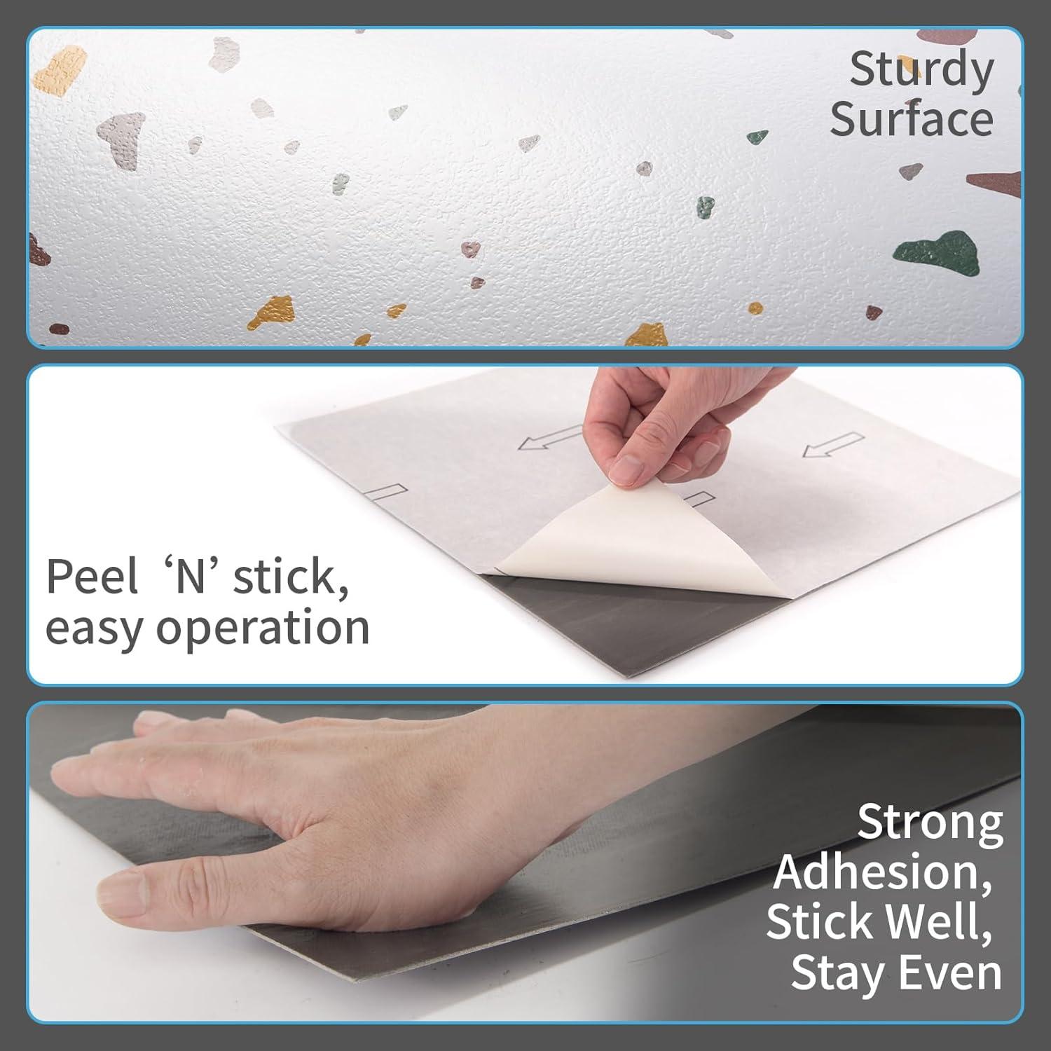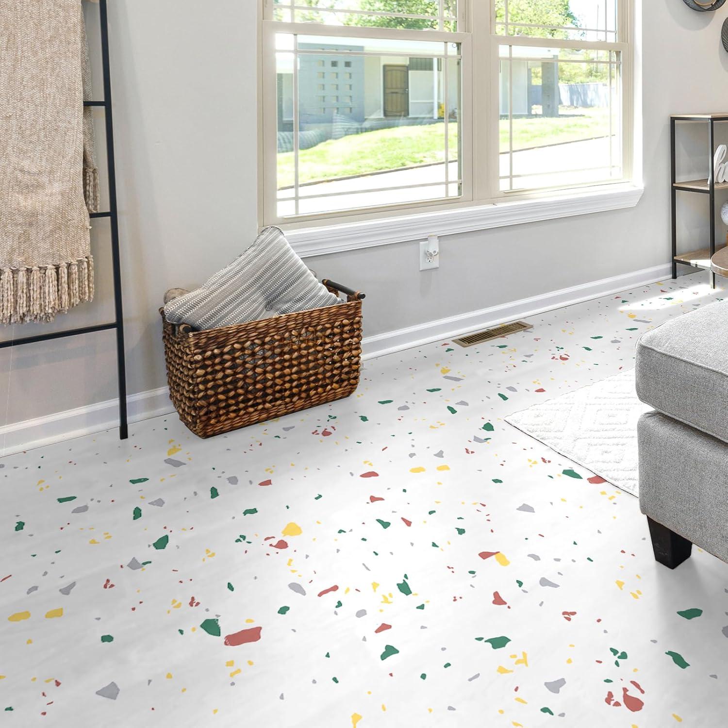 Art3d Peel and Stick Floor Tile, 30-Pack 12 x 12in. Covers 30 Sq.ft, Waterproof Vinyl Flooring Tiles Self Adhesive for Kitchen, Bathroom & Bedroom - White Grey Vein Marble(Modern Terrazzo)
