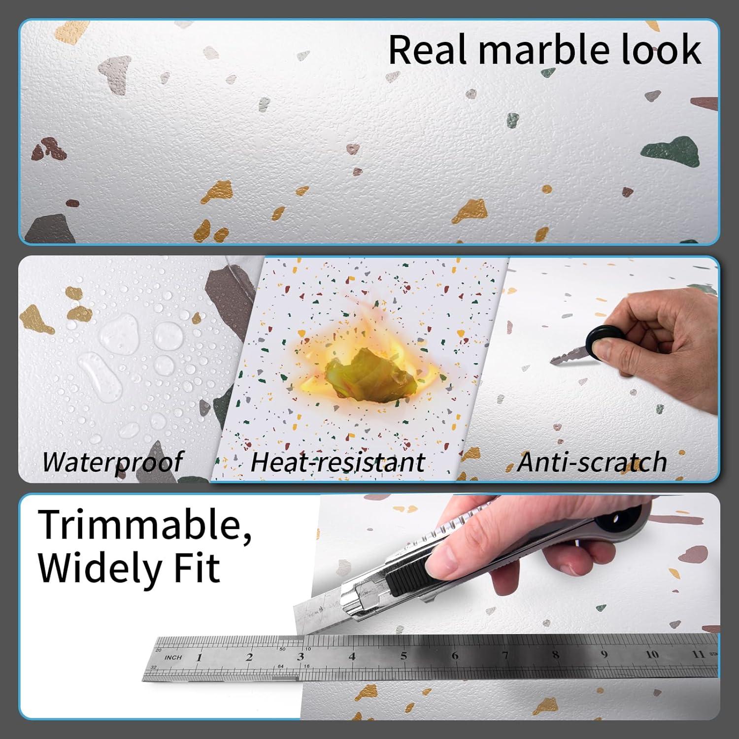 Art3d Peel and Stick Floor Tile, 30-Pack 12 x 12in. Covers 30 Sq.ft, Waterproof Vinyl Flooring Tiles Self Adhesive for Kitchen, Bathroom & Bedroom – White Grey Vein Marble(Modern Terrazzo)