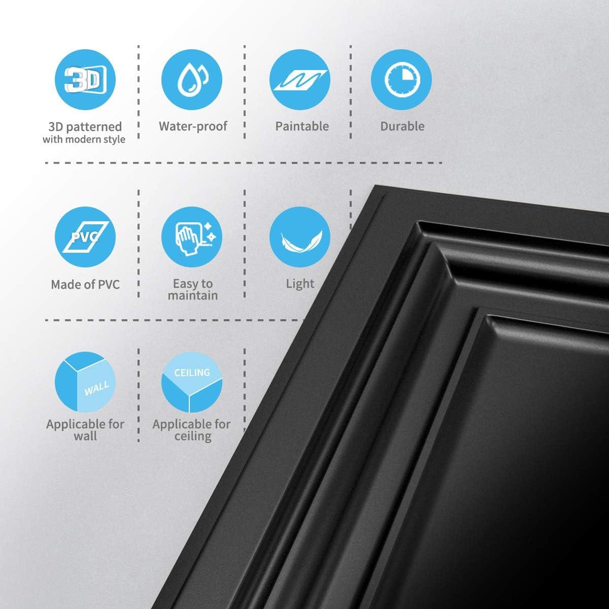 imageArt3d PVC Ceiling Tiles 2x2 Plastic Sheet in White 24PackSquare Black