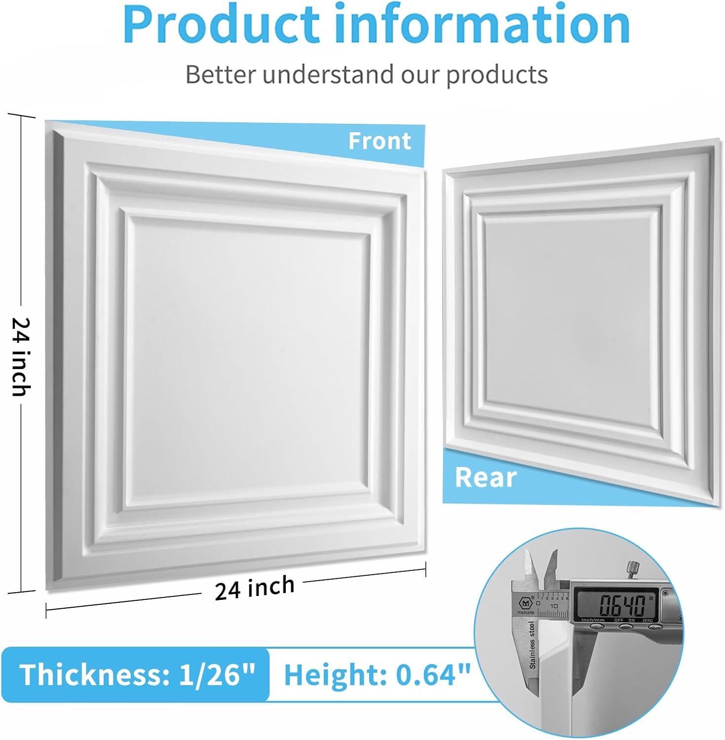 Art3d PVC Ceiling Tiles, 2'x2' Plastic Sheet in White (24-Pack)(White 1)
