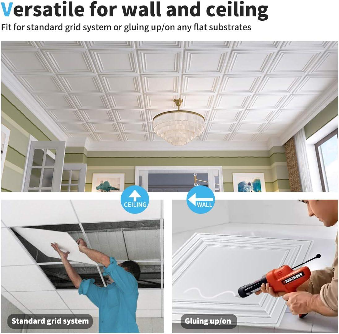 INSTALLATION: Easily lay into a standard 15/16″ T-bar drop ceiling grid system or glued over any flat substrates
