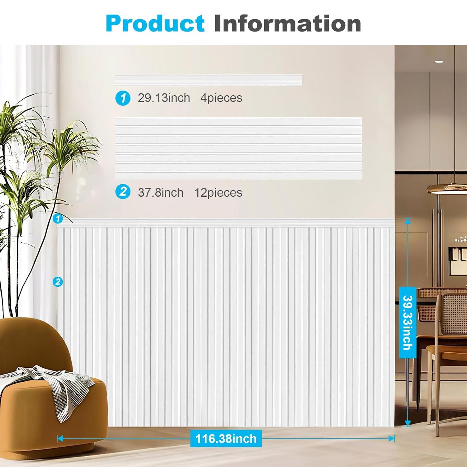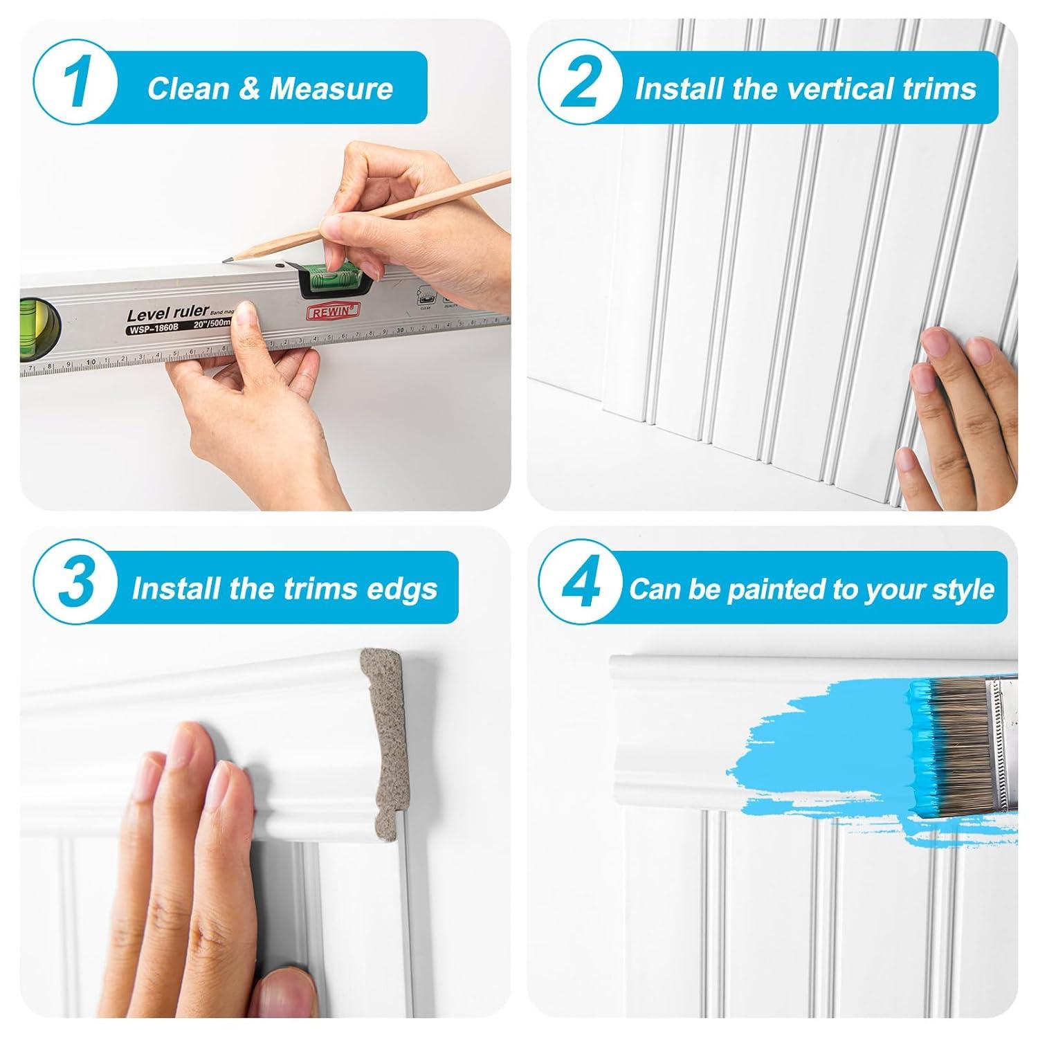 Multi-Style Paneling: The elegance of bead board paneling for walls layout, this kit offers versatile installation to match modern, farmhouse, or traditional décor